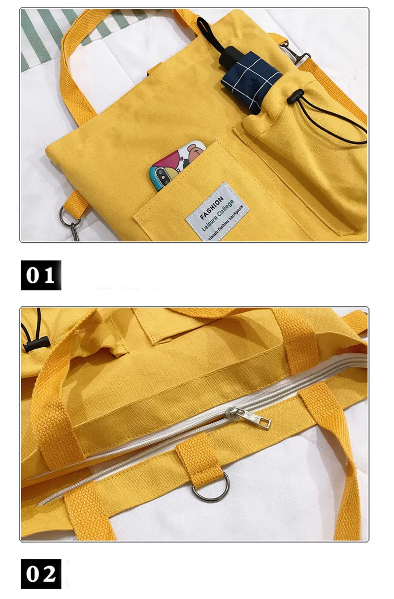 Harajuku Canvas Bags Students Handbag With Pockets Preppy Buckpack Shoulder Bag For Women