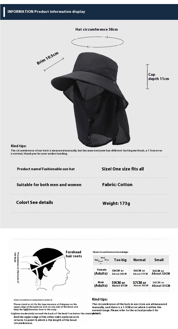 If you're looking for a hat that combines sun protection, comfort, and durability, the Hat Men's Sun-shade Fisherman Hat Big Brim Sun-proof Fishing Hat is the perfect choice. Its wide brim ensures maximum protection from the sun, while the breathable material keeps you cool and comfortable. The adjustable fit makes it suitable for all head sizes, making it an essential accessory for any outdoor enthusiast, whether you're fishing, hiking, or just spending time in the sun.