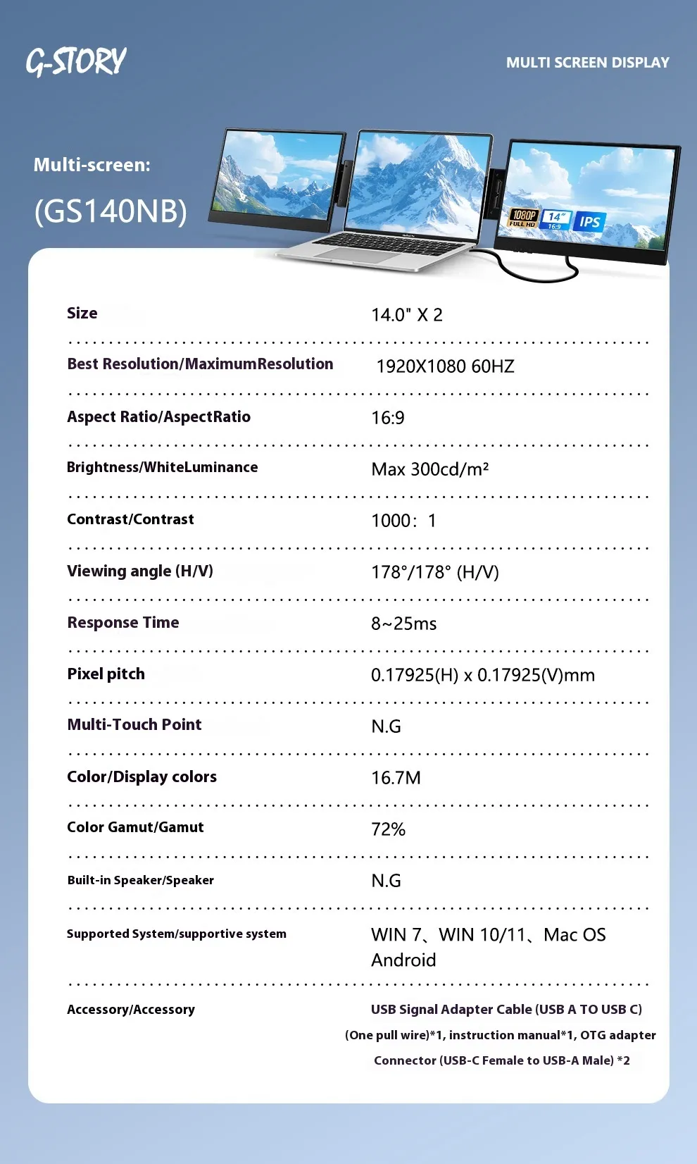 14-inch portable monitor, dual-screen office display, portable HDMI display, USB car display, compact work monitor, HD dual-screen display, office productivity monitor, portable digital display.