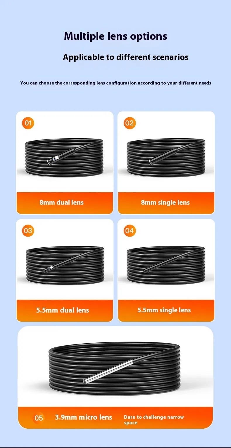 Equipped with an HD camera, this endoscope delivers crystal-clear visuals, enabling precise inspection of engine compartments, exhaust systems, and other intricate automotive areas.