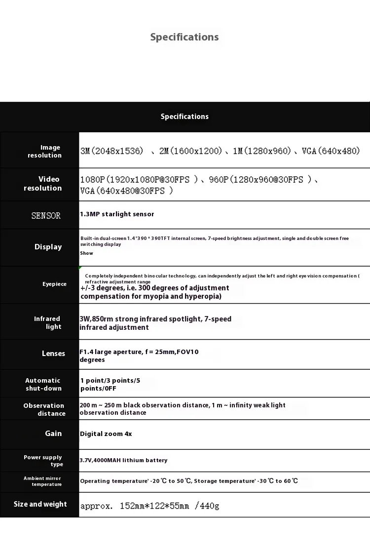 - Multiple Viewing Modes: Includes night vision and low-light enhancement
