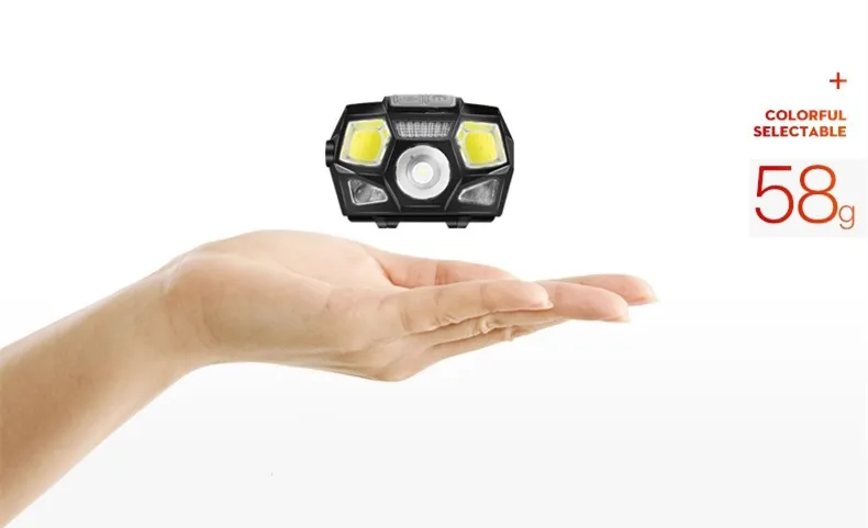 4. 5 lighting modes-high light-low light 2 * COB high light-main light + 2 * COB highlight LED red light flashing