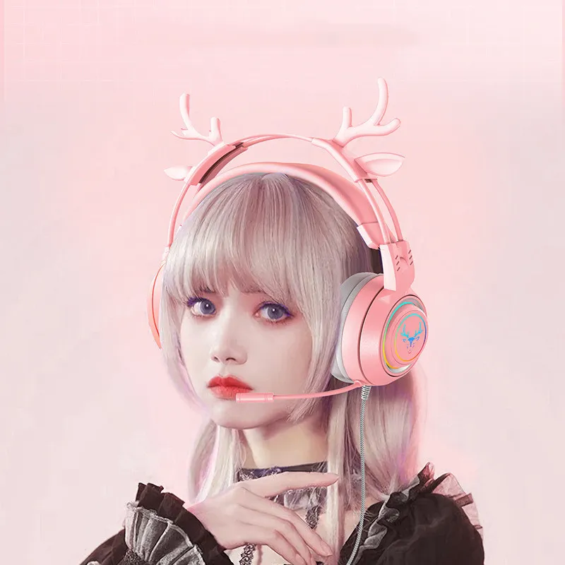 Color: pink deer ear light-emitting headphones with packaging, blue deer ear light-emitting headphones with packaging, black deer ear