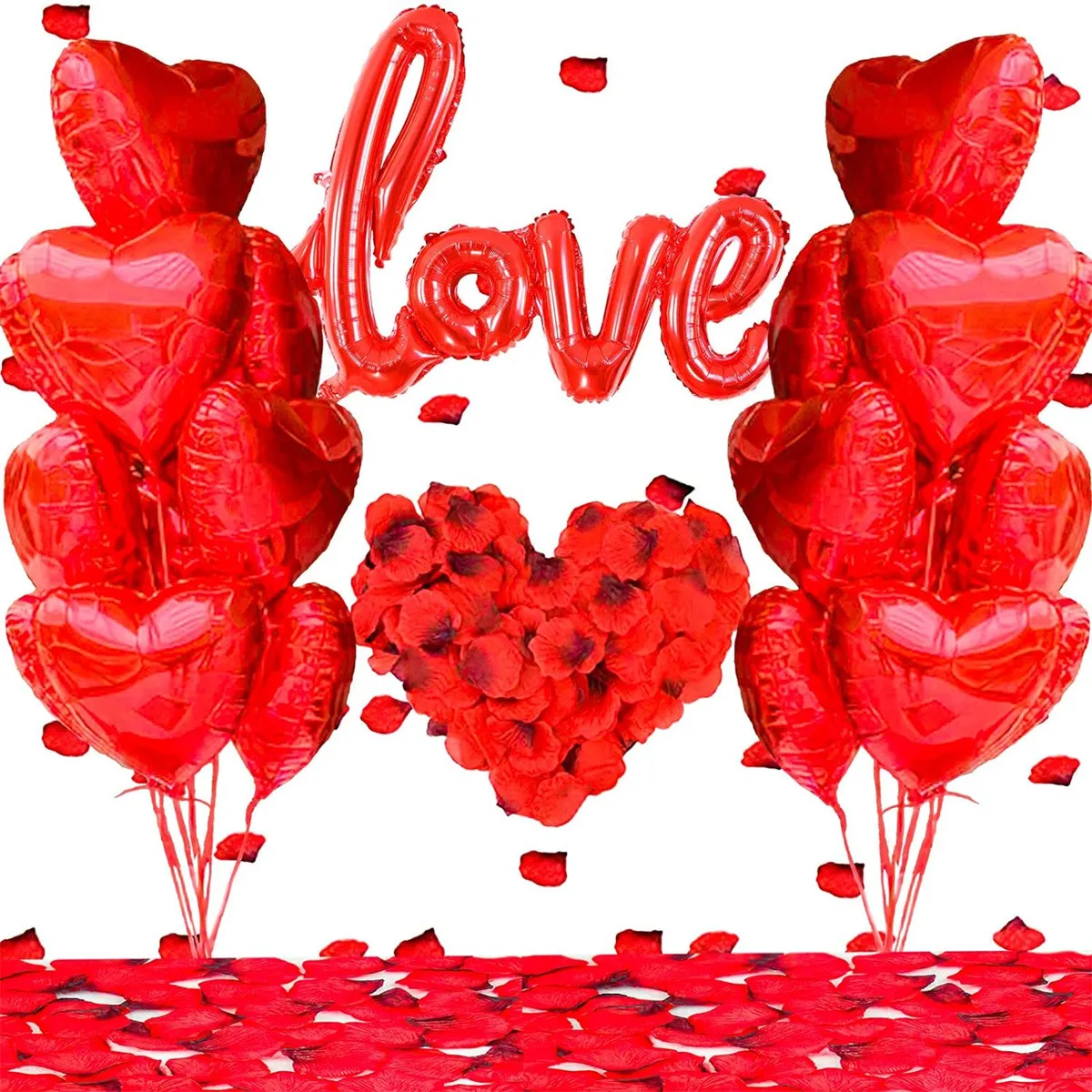 Red Love * 1 Red heart aluminum foil balloon * 20 Silk rose petals * 1000