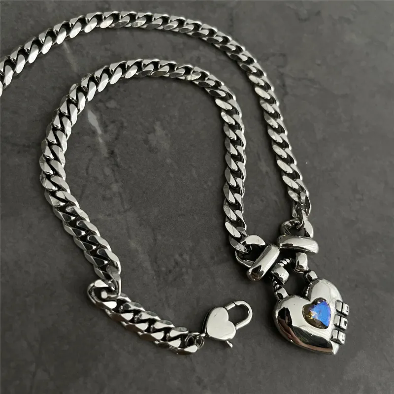 Make a bold fashion statement with the Heart Sweater Necklace, a stunning accessory designed to complement any outfit. Featuring a chunky chain and a chic heart-shaped pendant, this necklace is the perfect blend of edgy and elegant. Its short length ensures it sits beautifully on your collarbone, making it an eye-catching addition to your jewelry collection.