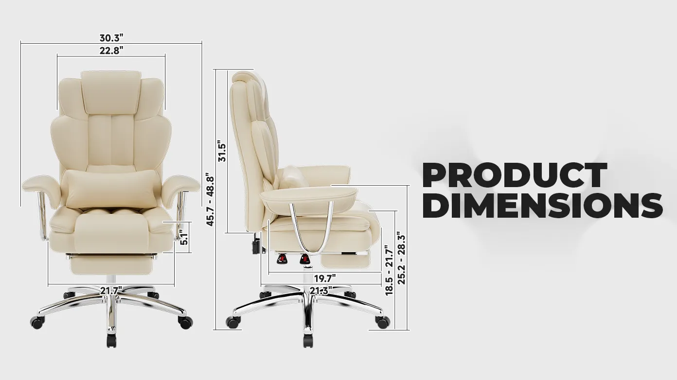 Product Name:Office Chair, Big and Tall Executive Office Chair with Footrest, Leather Computer Chair, Ergonomic Reclining Chair High Back , Large Home Office Chair (Beige)