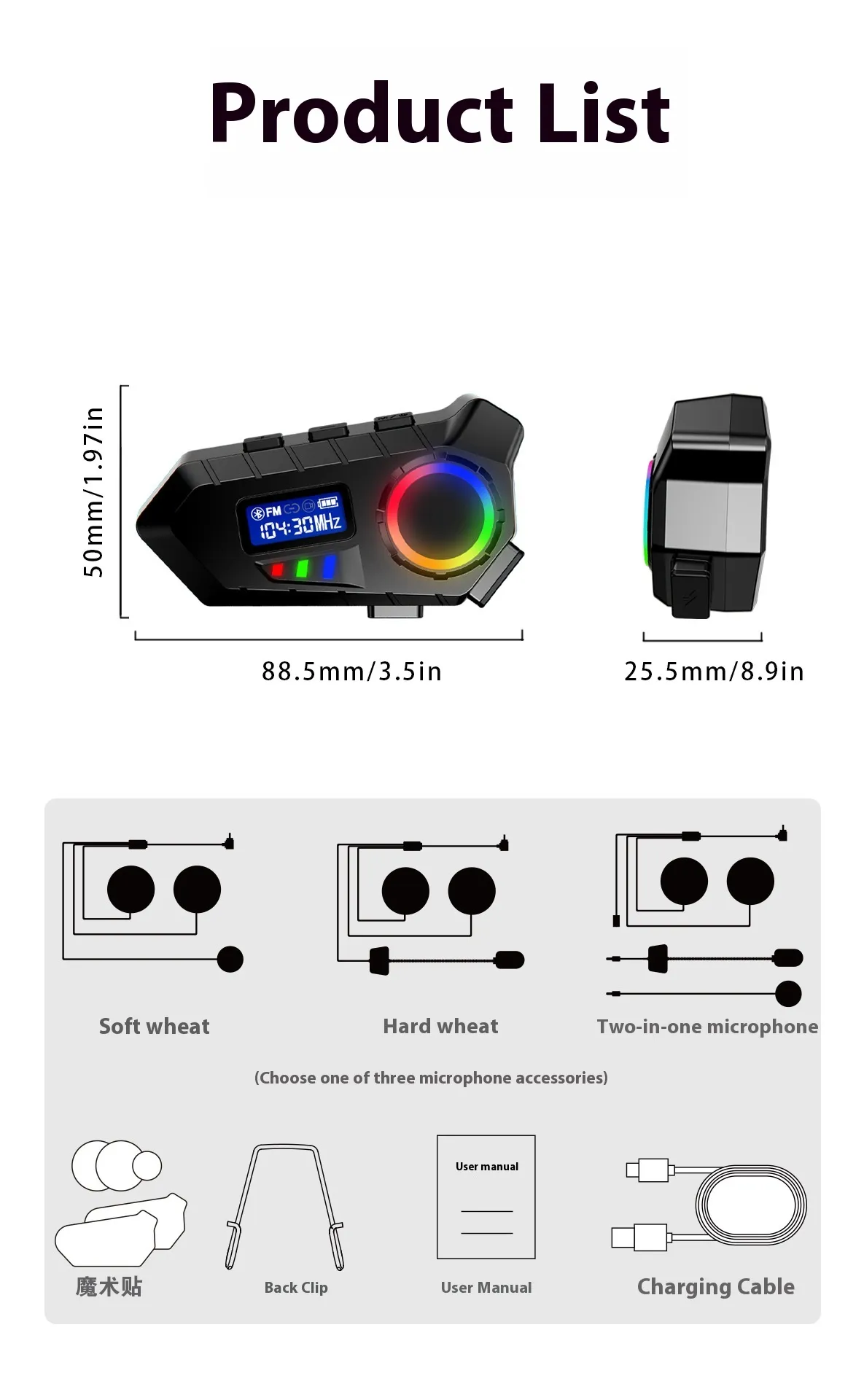 The ergonomic design and adjustable mounting system ensure a secure fit on most motorcycle helmets. Lightweight yet durable, the headset allows hours of comfortable use. Bluetooth connectivity supports hands-free calls and wireless music streaming, enhancing safety while riding.