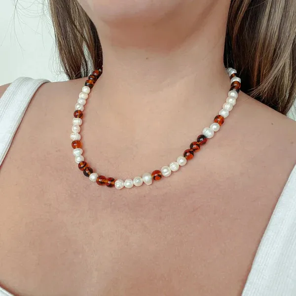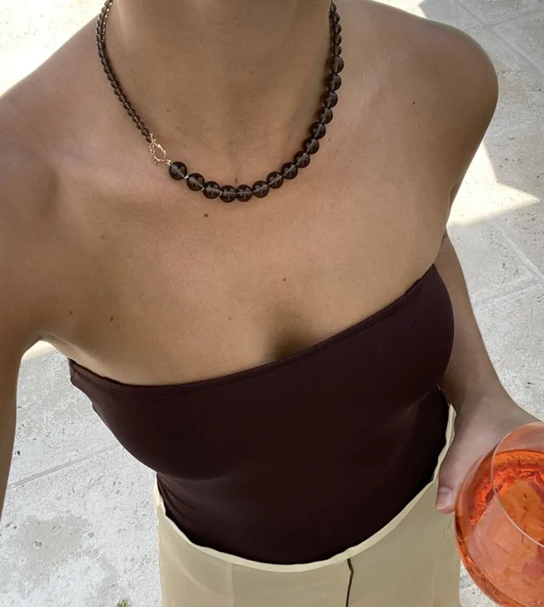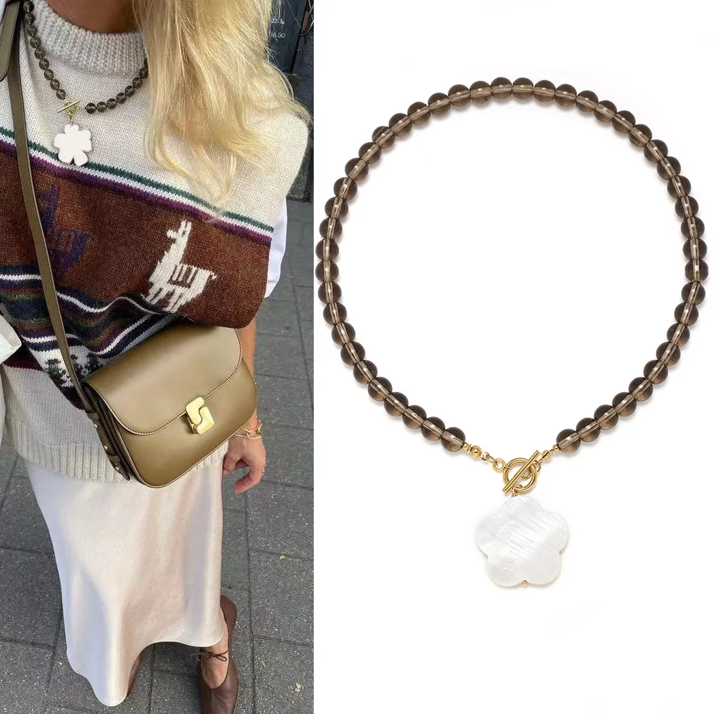 The warm, earthy brown tones of this necklace make it the ideal choice for autumn and winter fashion. Whether you’re layering it over your favorite turtleneck or letting it peek out from under your coat, this necklace adds a touch of warmth and elegance to your cold-weather outfits. It’s perfect for those who want to stay stylish and comfortable through the cooler months.