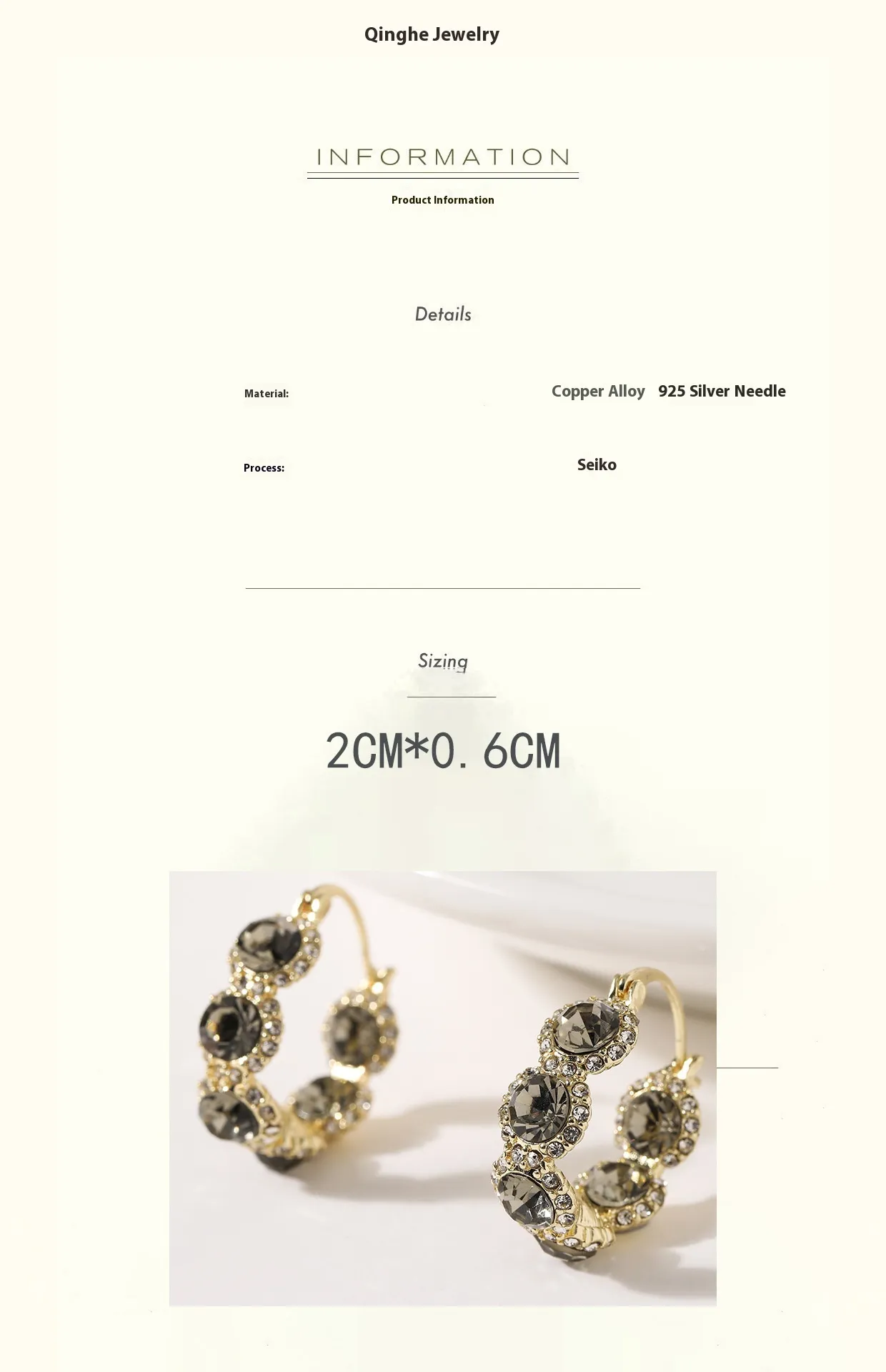 High-grade Gray Diamond Ring Ear Clip Earrings For Women