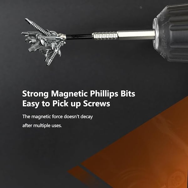 🔩 Super Magnetic Position: Each bit is equipped with a strong magnet at the end, allowing you to easily pick up and fix screws without slipping or stripping. This ensures a secure hold and precise placement every time.
