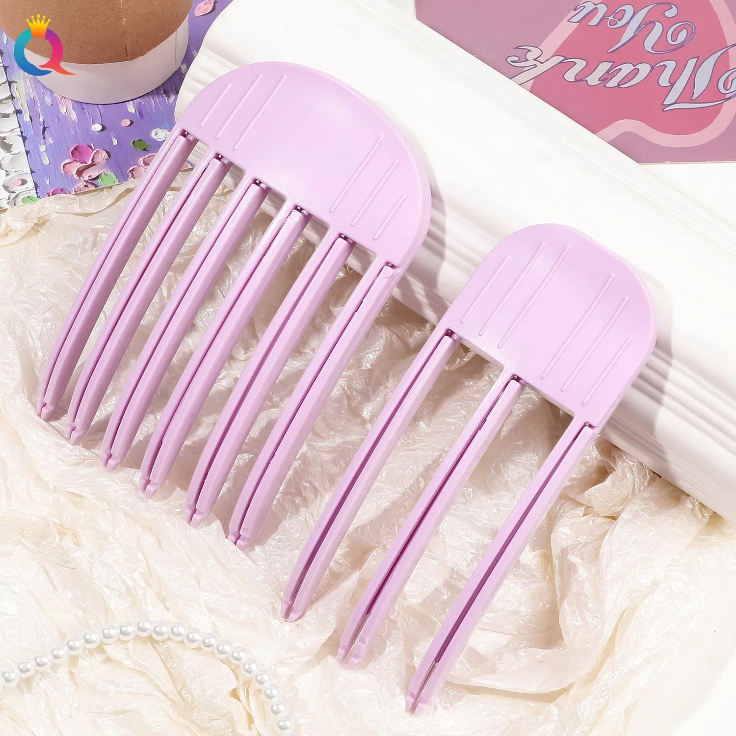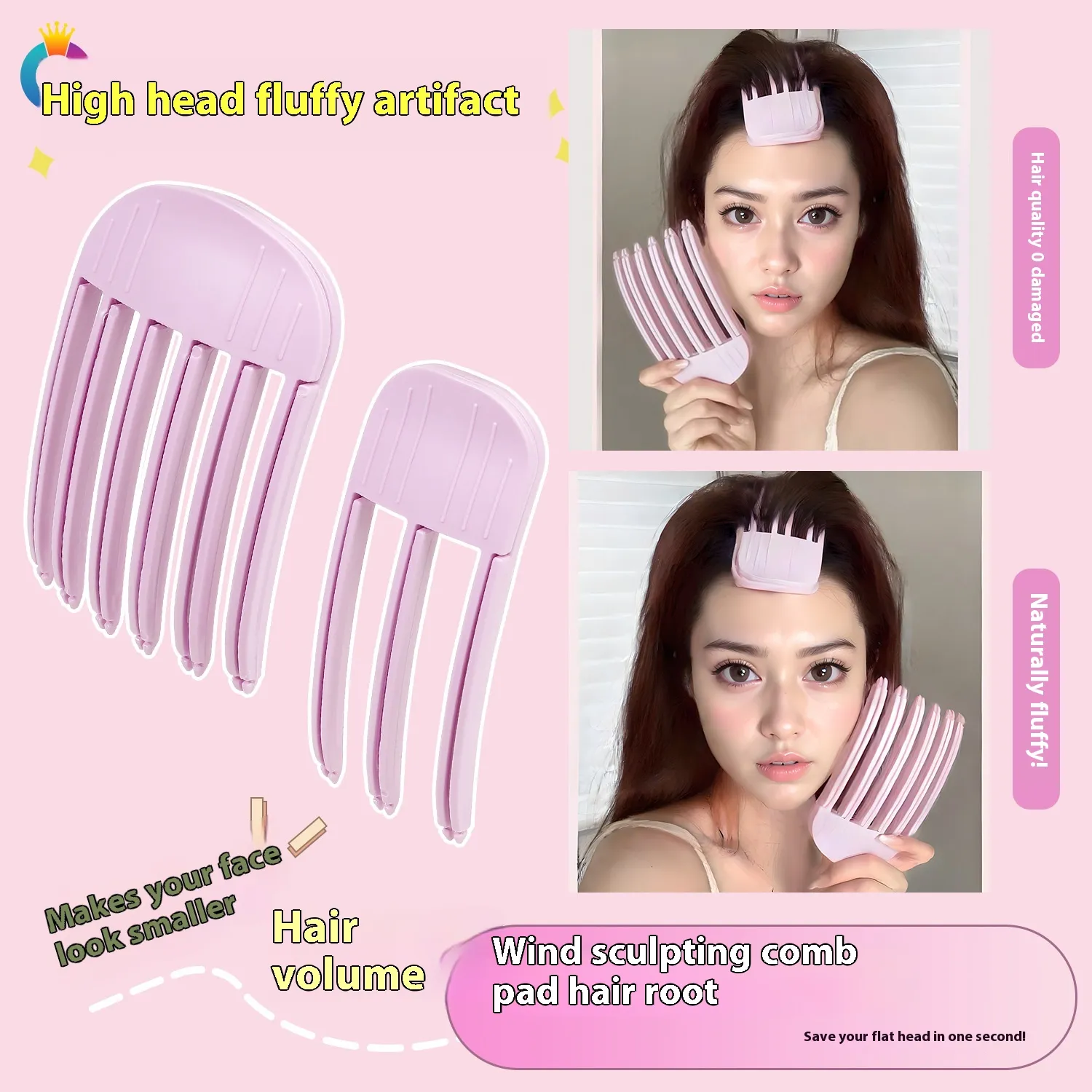 Color: three vent comb-pink, six vent comb-pink, pink two-piece set (three teeth and six teeth), hair root clip-pink, fluffy clip-pink 2