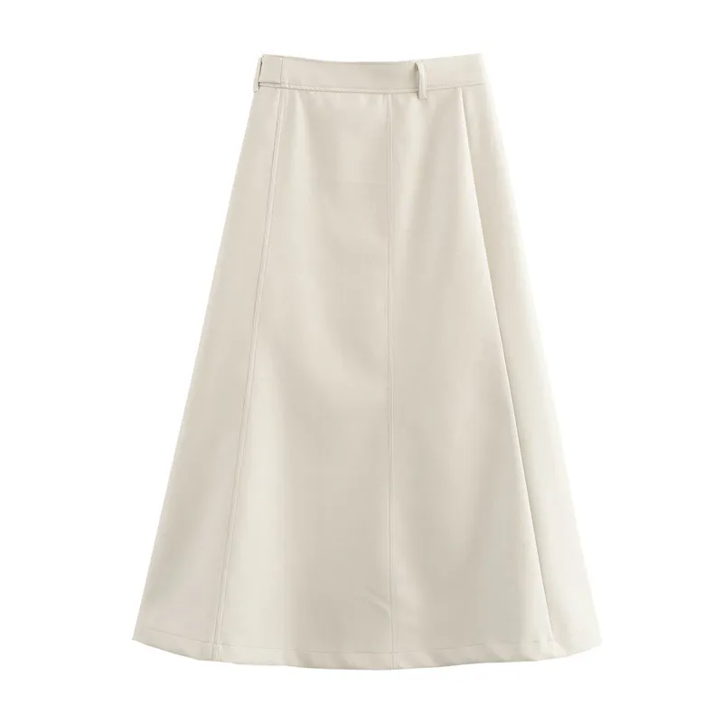 High Waist Pure Color with Belt A-Line Faux Leather Midi Skirt – Chic, Stylish, and Versatile