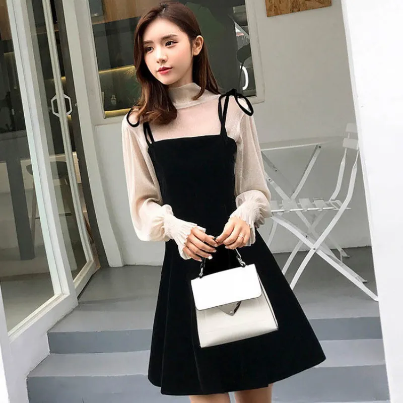 Color: [Red Sling+Apricot Top] Two-piece suit, [Black Sling+Apricot Top] Two-piece suit, [Black Sling+Black Top] Two-piece suit, [Red Sling