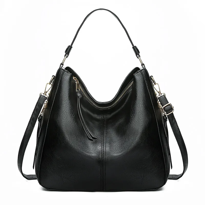 Hobos Zipper Bucket Bags With Adjustable Shoulder-strap Handbags Temperament High Capacity Messenger Shoulder Bag For Women