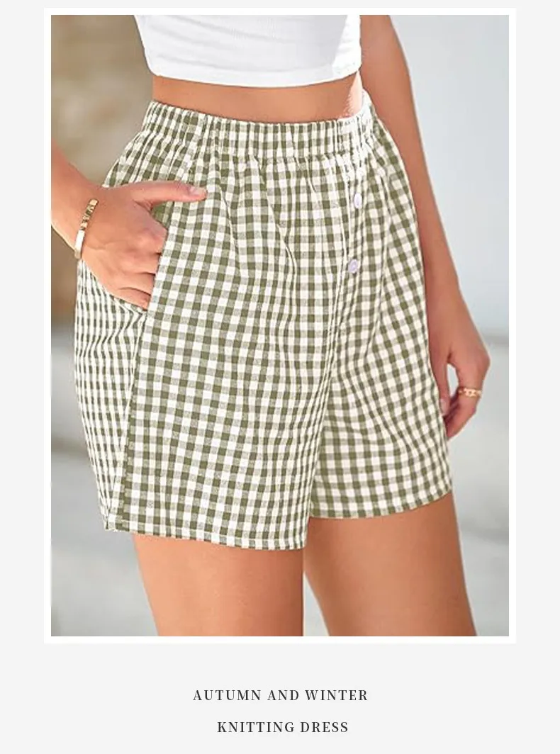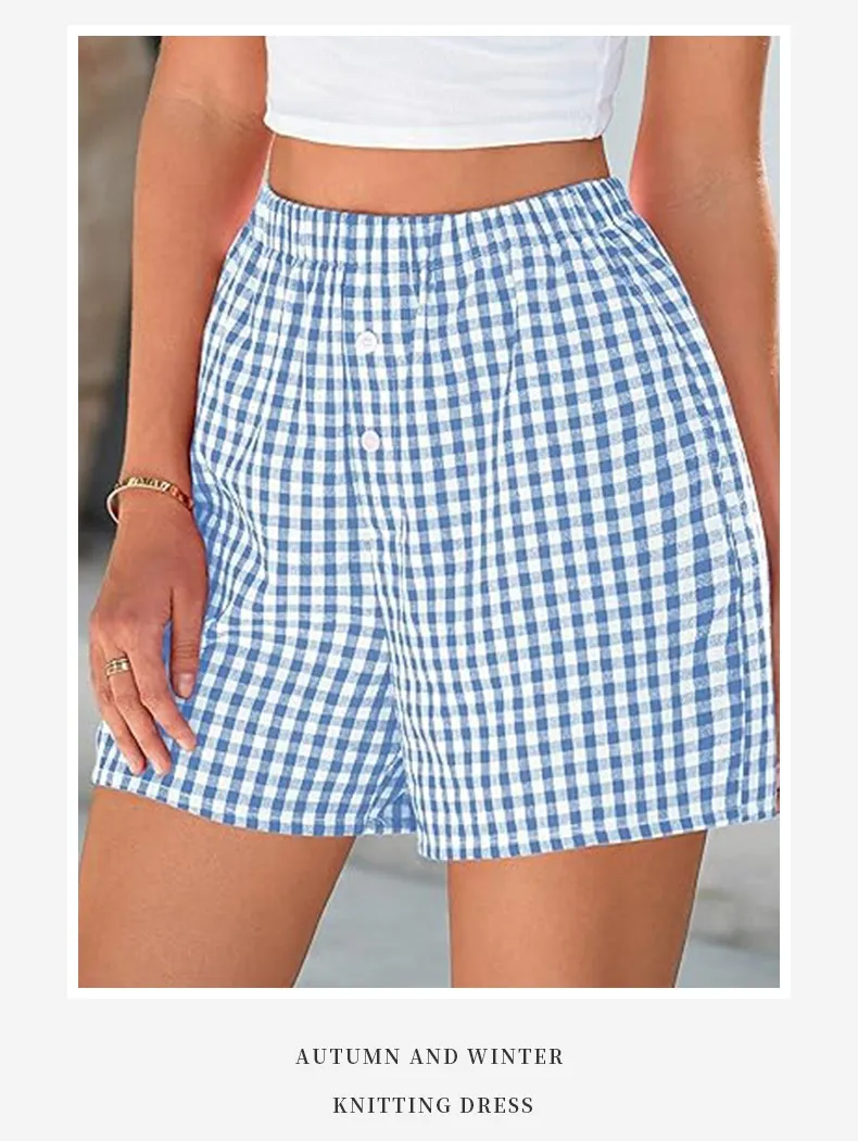 Holiday Women's Casual High Waist Loose Fashion Plaid Shorts