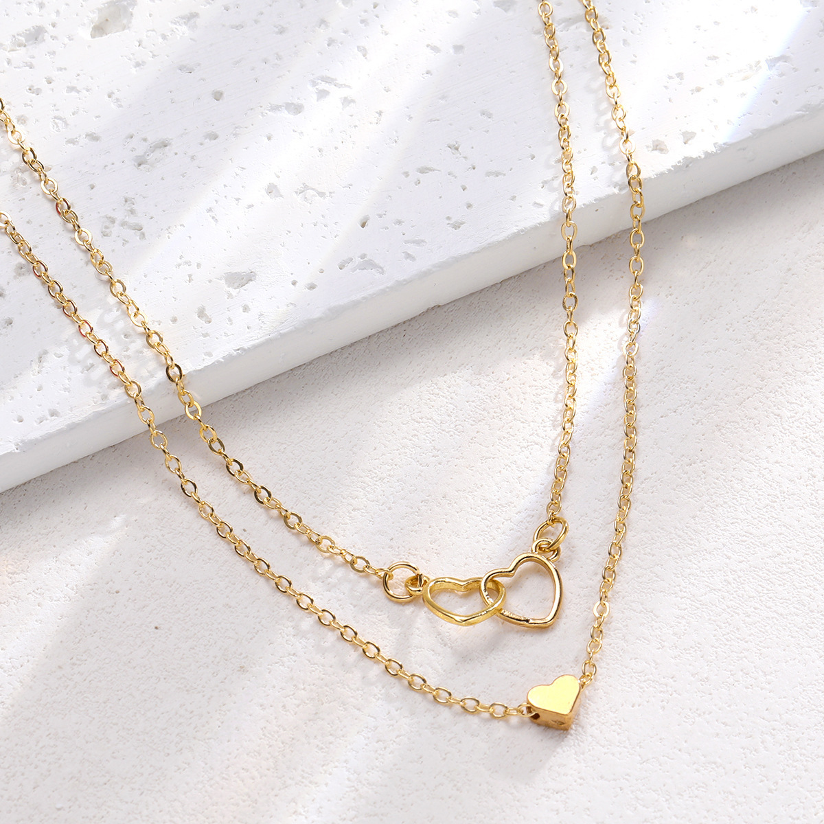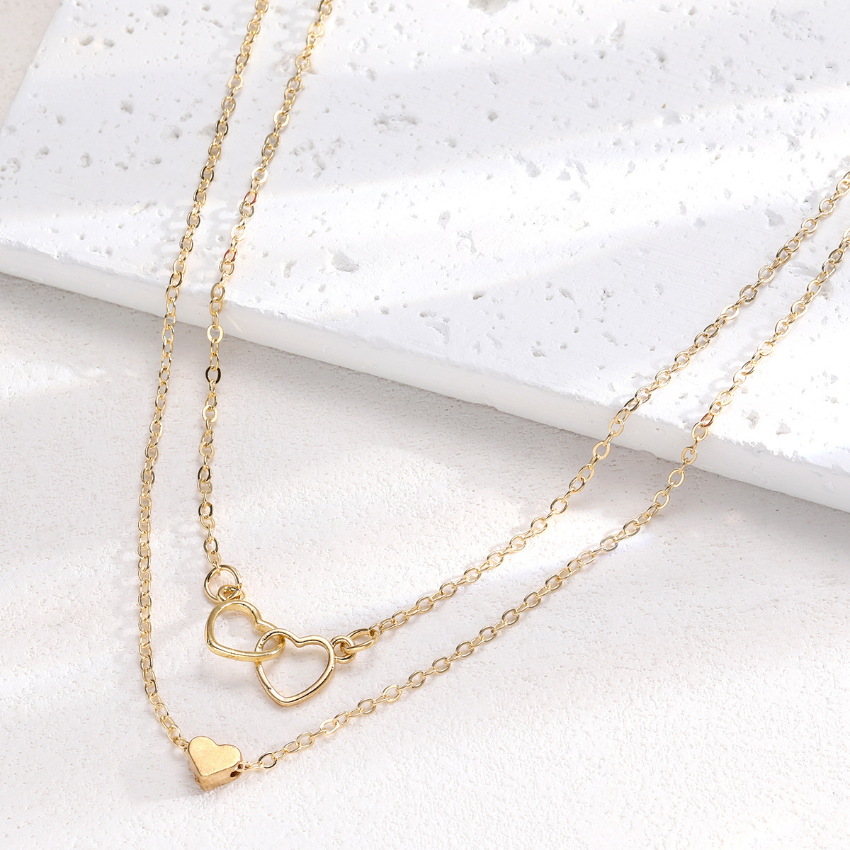 Hollow Cross Heart Pendant Double-layer Necklace