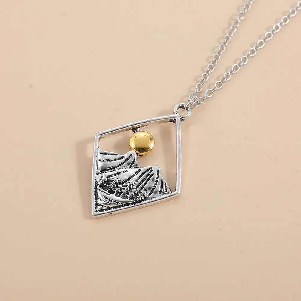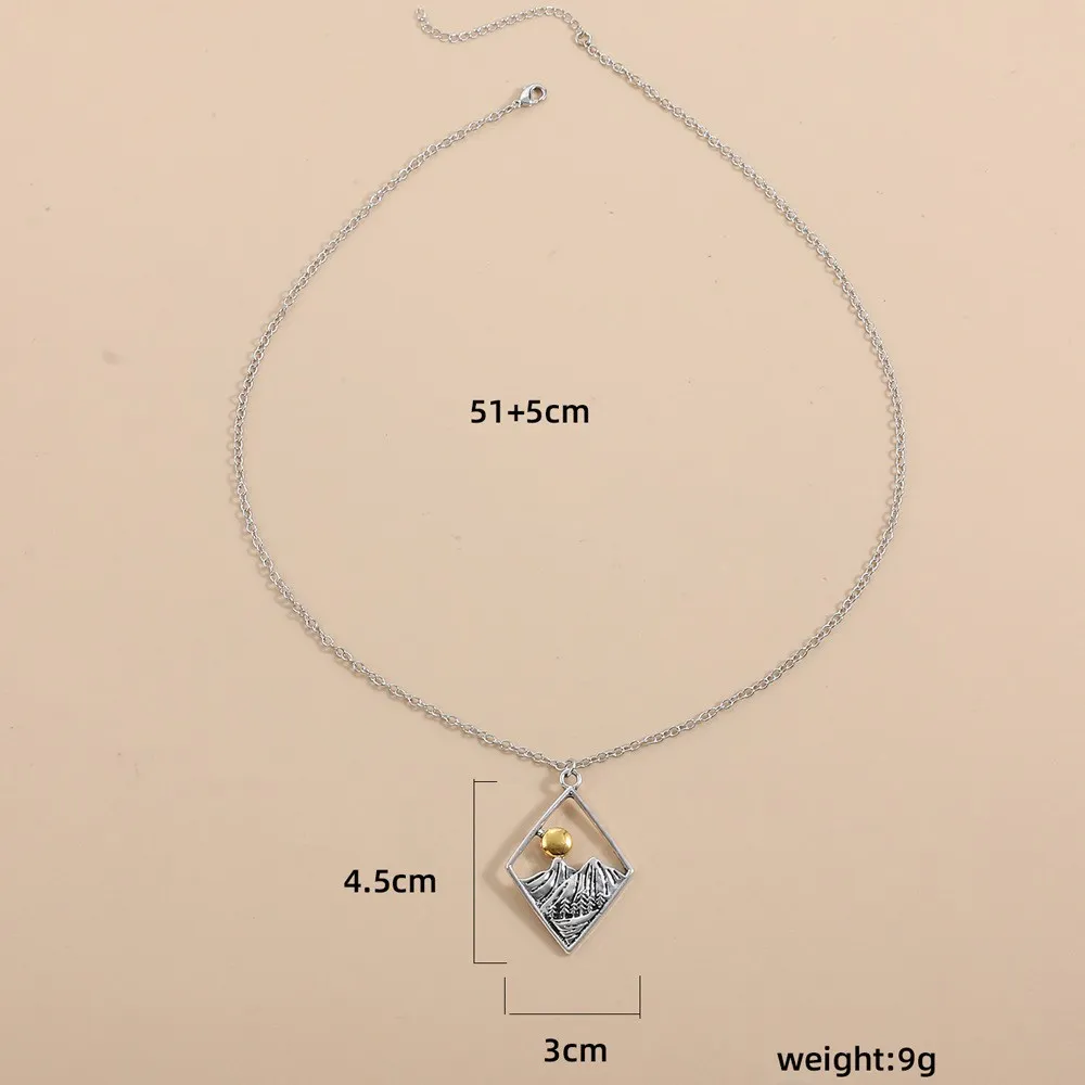 Hollow Sun Mountain Alloy Pendant Necklace