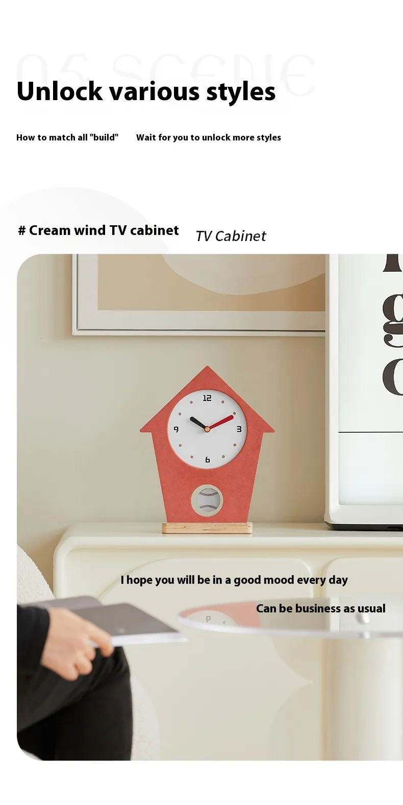 TV Cabinet: Place it on your TV cabinet to bring a modern, sleek look to your living room while keeping track of time
