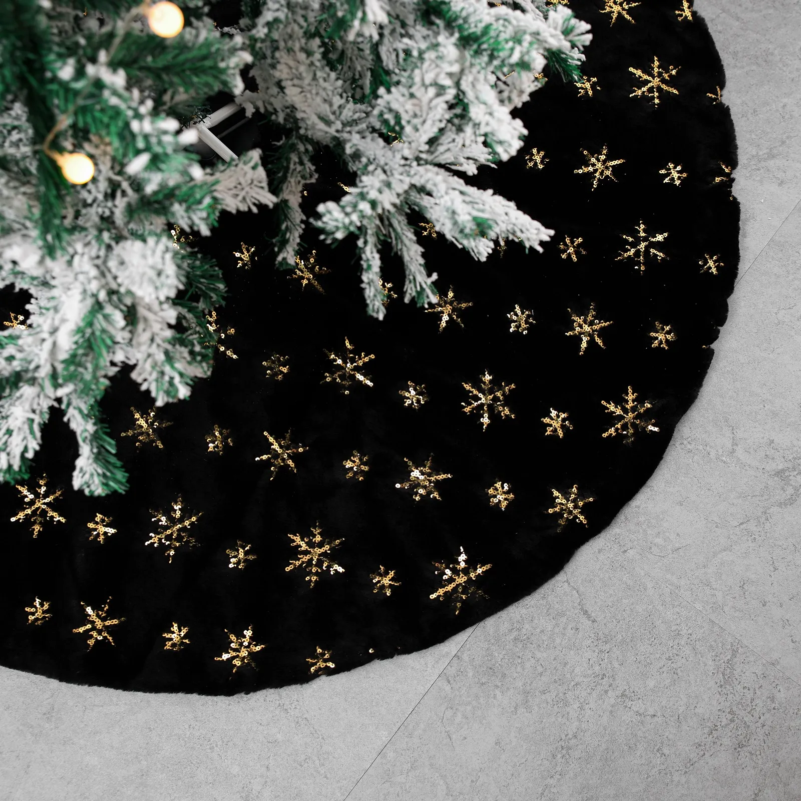 interiors alike. Perfect for those who appreciate refined decor, the black velvet tree skirt enhances the beauty of your Christmas tree