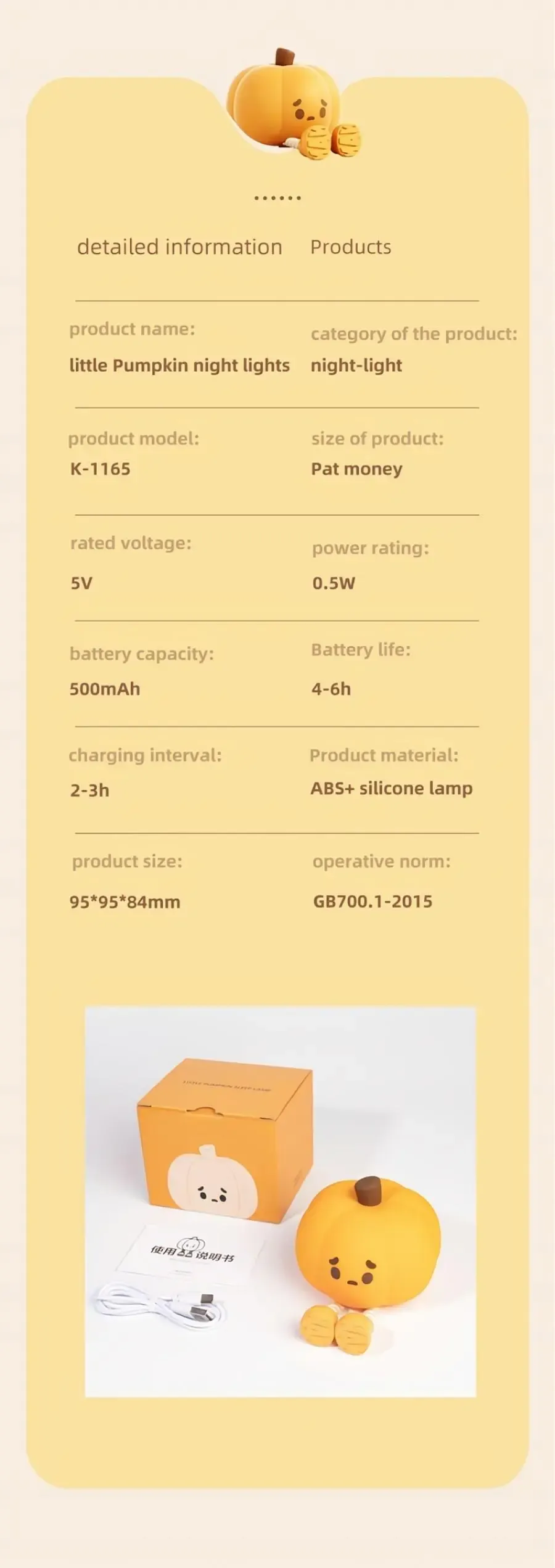 Light color: small pumpkin silicone light