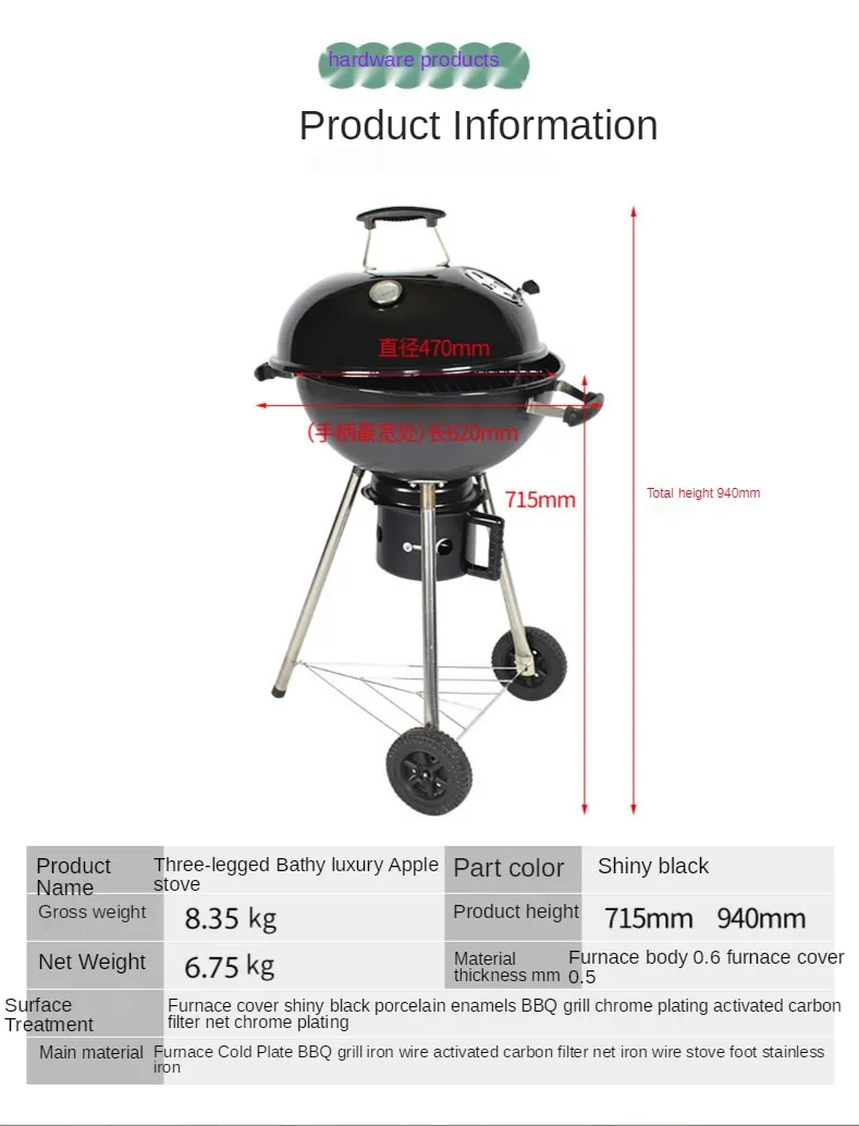 Home Outdoor BBQ Grill Portable Grill 3.5 Inch Charcoal Grill Heat Resistant Pressure Resistant Grill