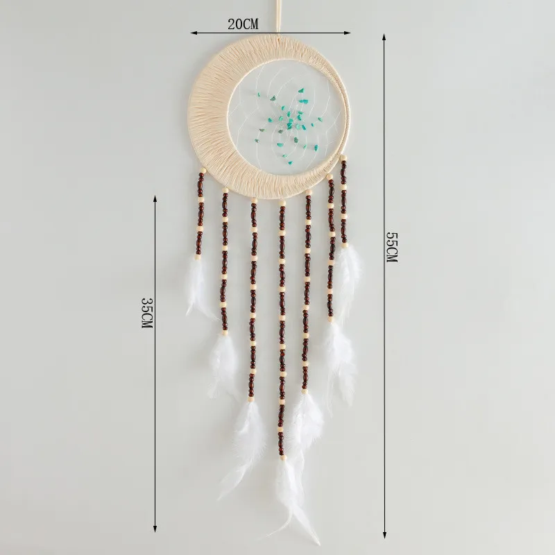Material: Iron ring natural gravel fine cotton thread Raffia natural wood bead pure natural feather