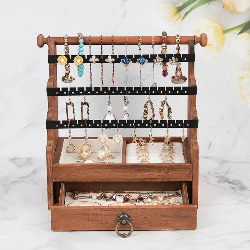 This jewelry stand is more than just an organizer—it's a piece of décor in its own right. Whether you place it in your bedroom, closet, or bathroom, it adds a touch of sophistication and organization to any space. The wooden finish adds warmth and natural beauty to your home.