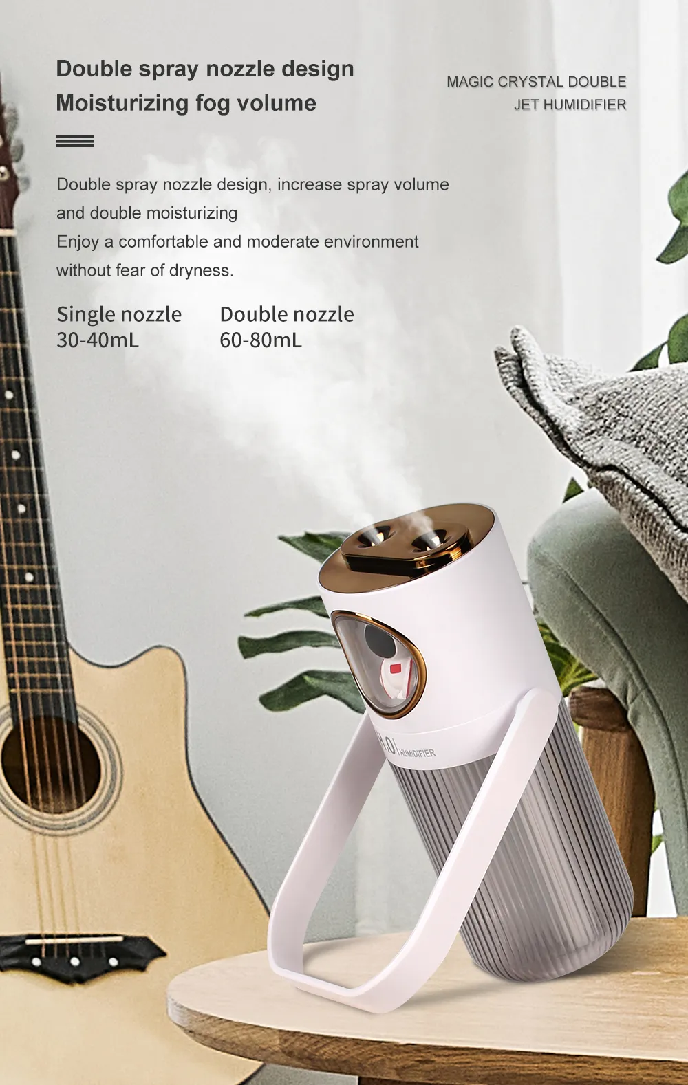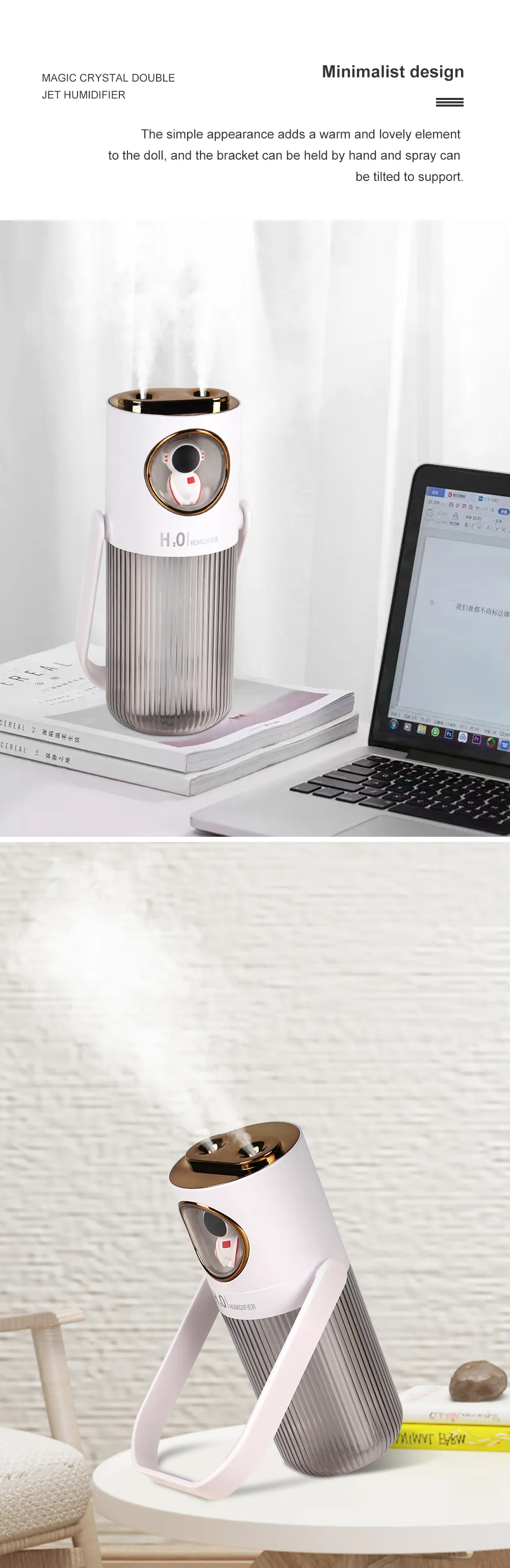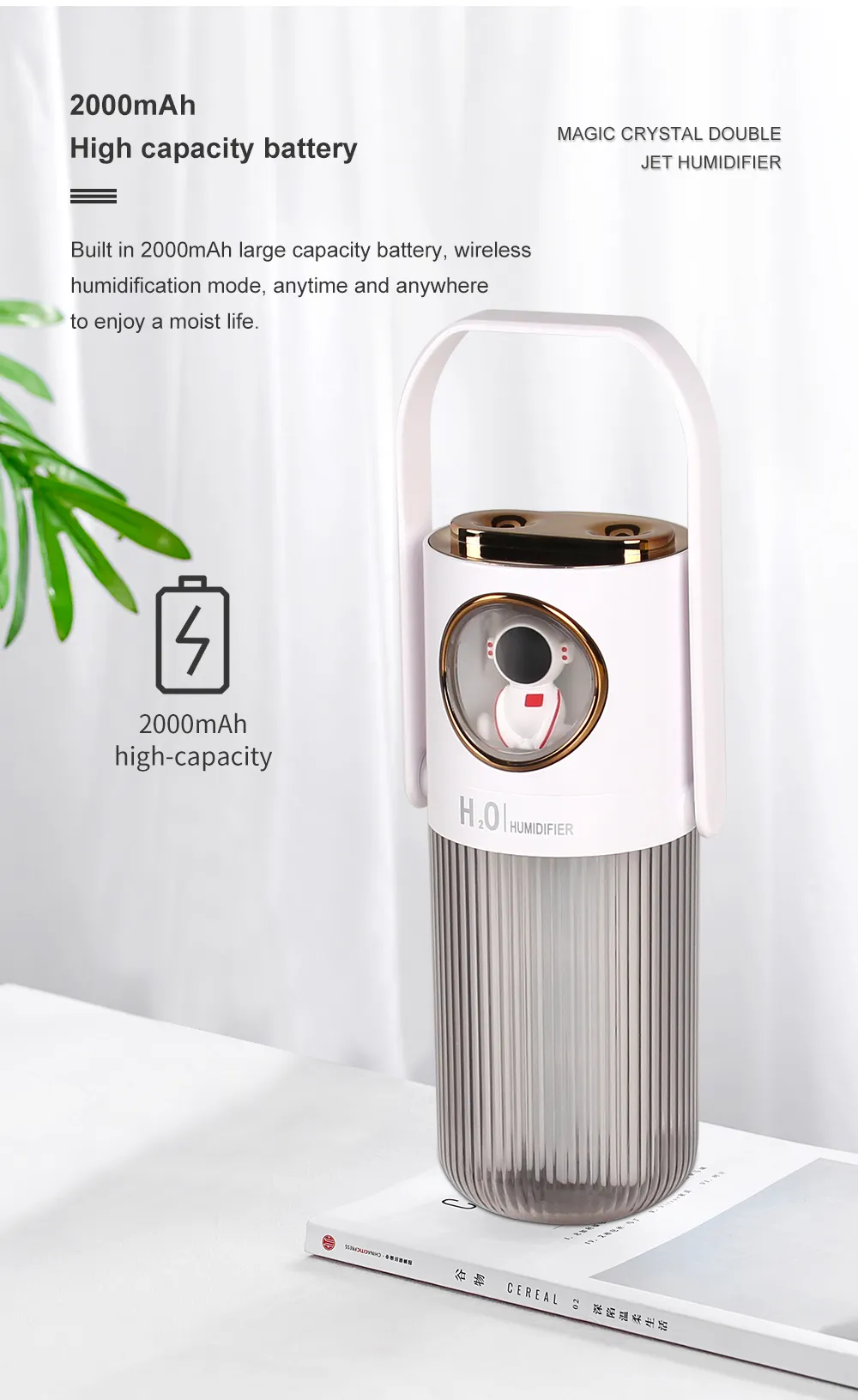 HOMEFISH 2023 New Arrival 300ml Humidifier 2000mah Battery Operation Air Humidifier For Bedroom