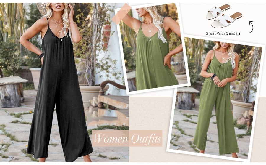 ✅Dressing Tips: Great With Jacket, Sneakers, Sandals, Heels And Beach Hat For Outwear. Wear A Cardigan Over Wide Leg Jumpsuit On Cool Weather.