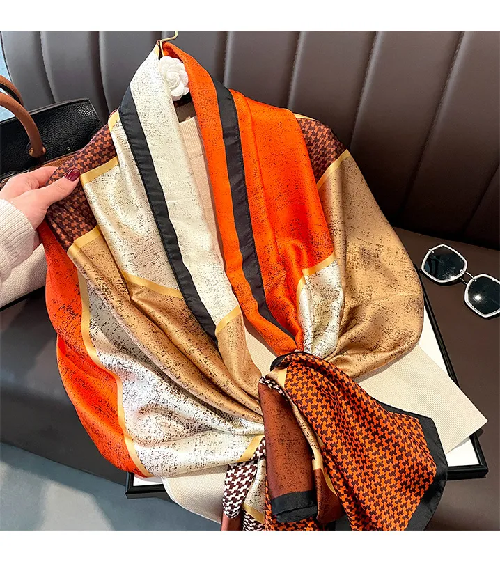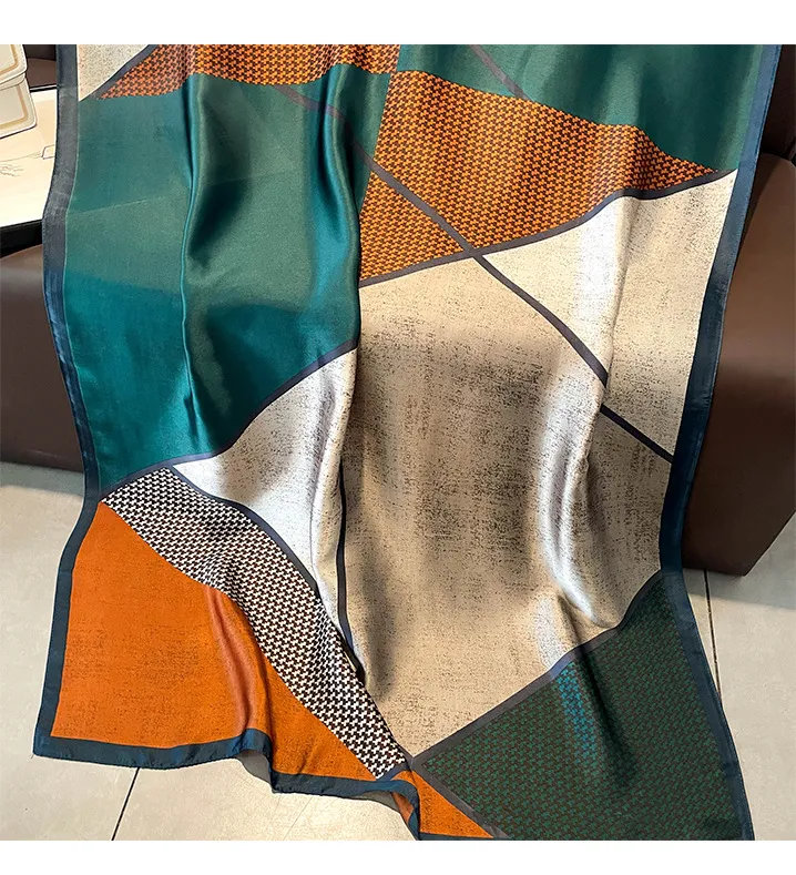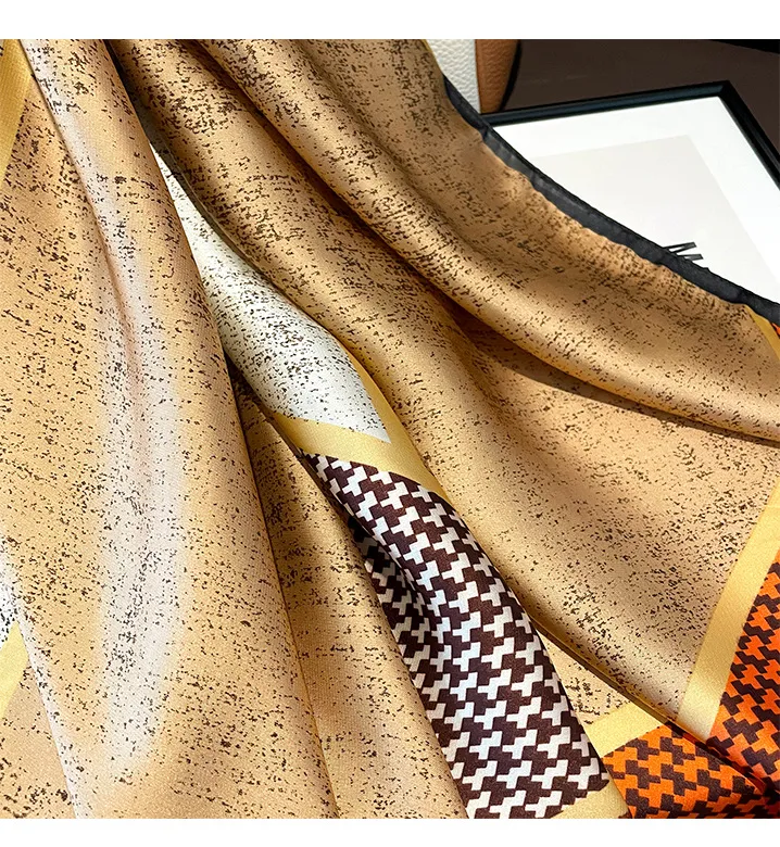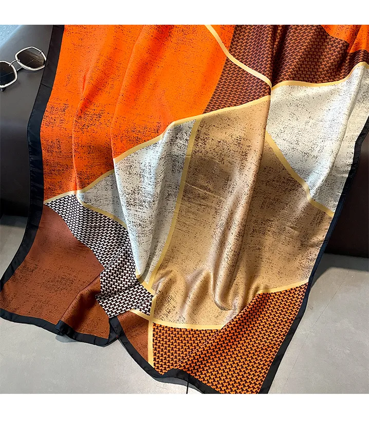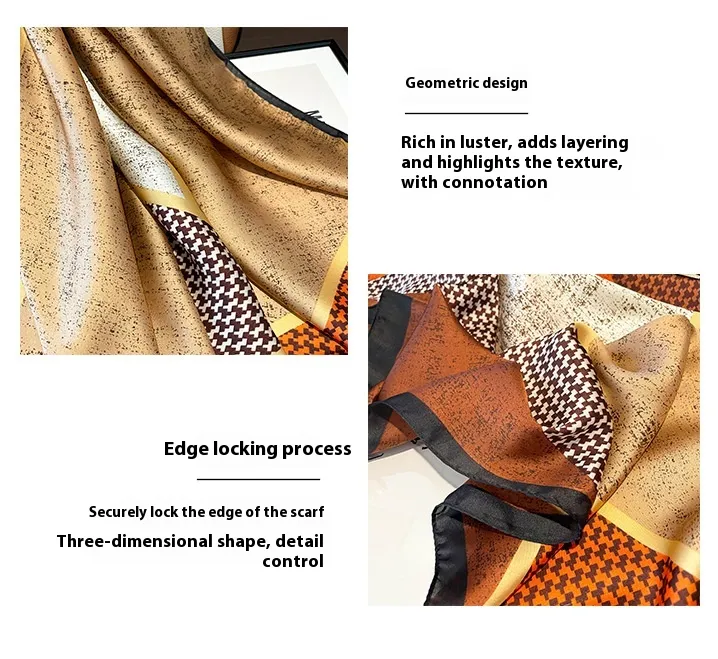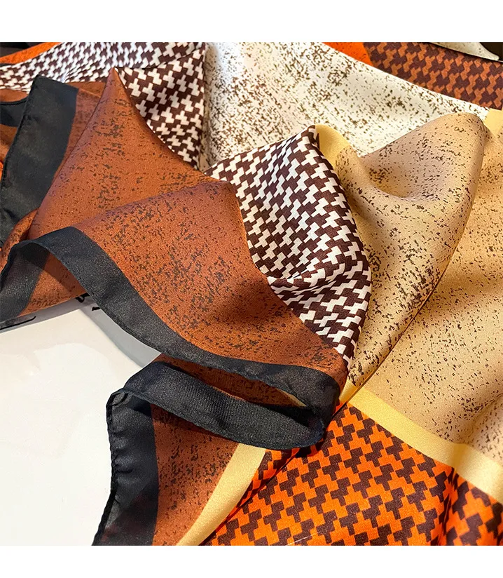 Houndstooth Color Matching New Silk Satin Scarf – Elegant and Timeless Accessory