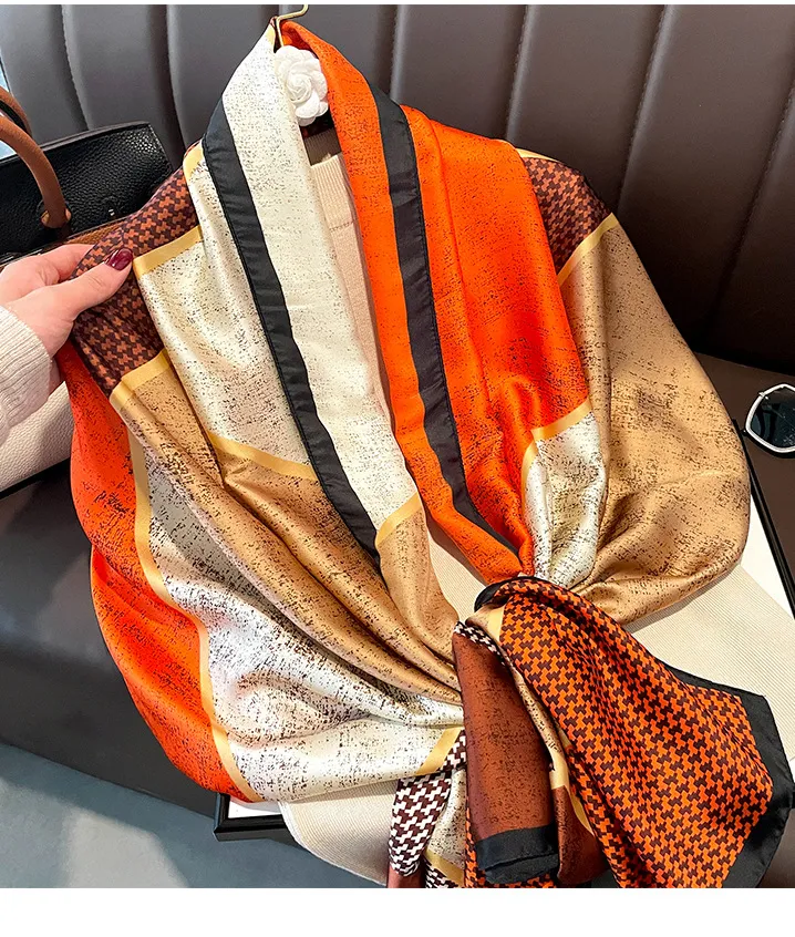 Lightweight and breathable, the silk satin material ensures comfort while keeping you stylish throughout the day. The scarf can be worn around your neck, draped over your shoulders, or styled in your hair for a unique, fashionable twist. Its timeless pattern and color scheme make it the perfect gift for fashion lovers or anyone who appreciates the art of accessorizing.
