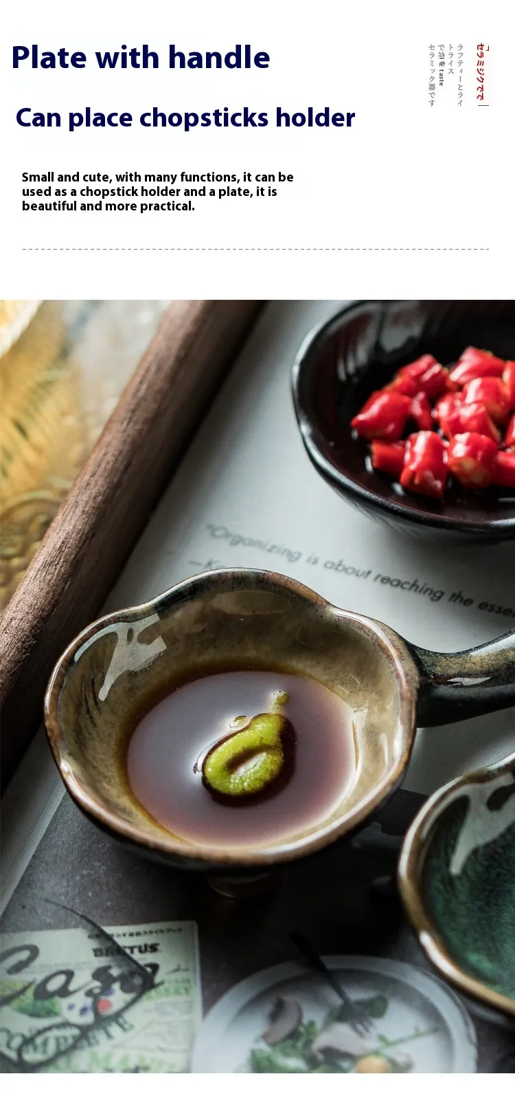 Household Ceramic Plum Hand Soy Sauce With Handle Saucer Dish