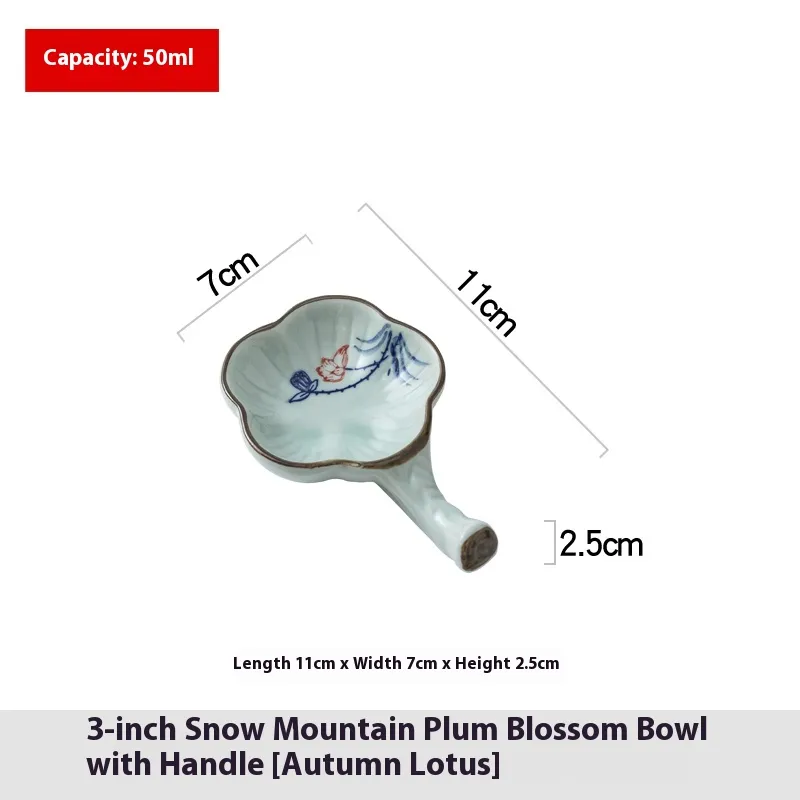 [simple painted red], 3-inch snow mountain with handle plum blossom Bowl [Autumn rhyme Lotus], 3-inch snow mountain with handle plum bowl