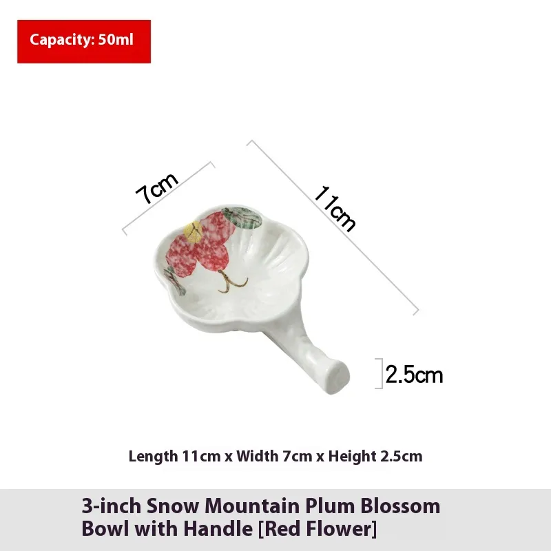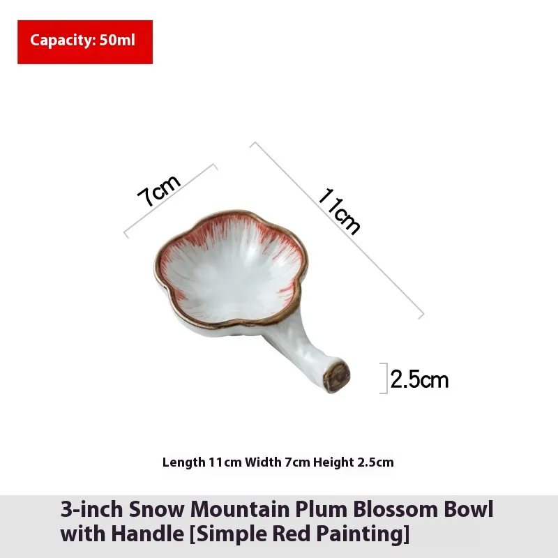 Color classification: 3-inch snow mountain with handle plum blossom Bowl [red flower], 3-inch snow mountain with handle plum blossom Bowl