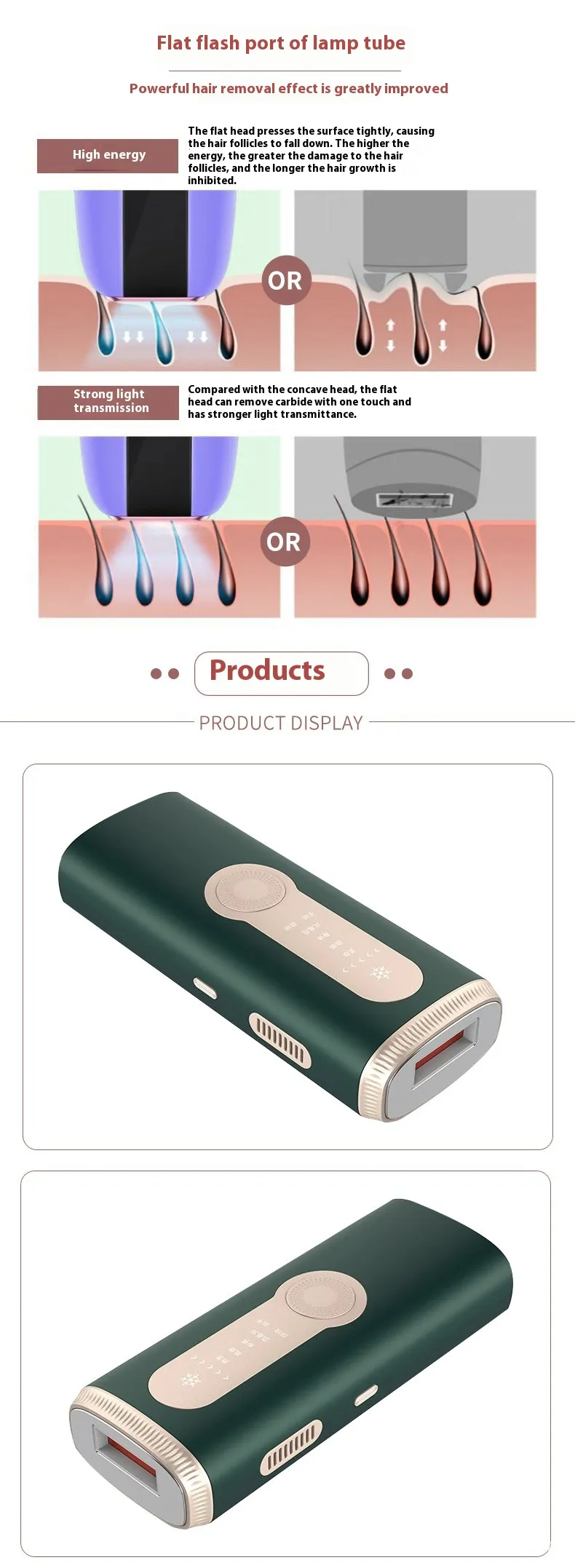 The Household Freezing Point Laser Hair Removal Device uses light pulses that are absorbed by the pigment in the hair follicles. The energy is converted into heat, which disrupts the hair follicle’s ability to grow hair. With each treatment, the hair follicles are gradually weakened, leading to permanent hair reduction over time.