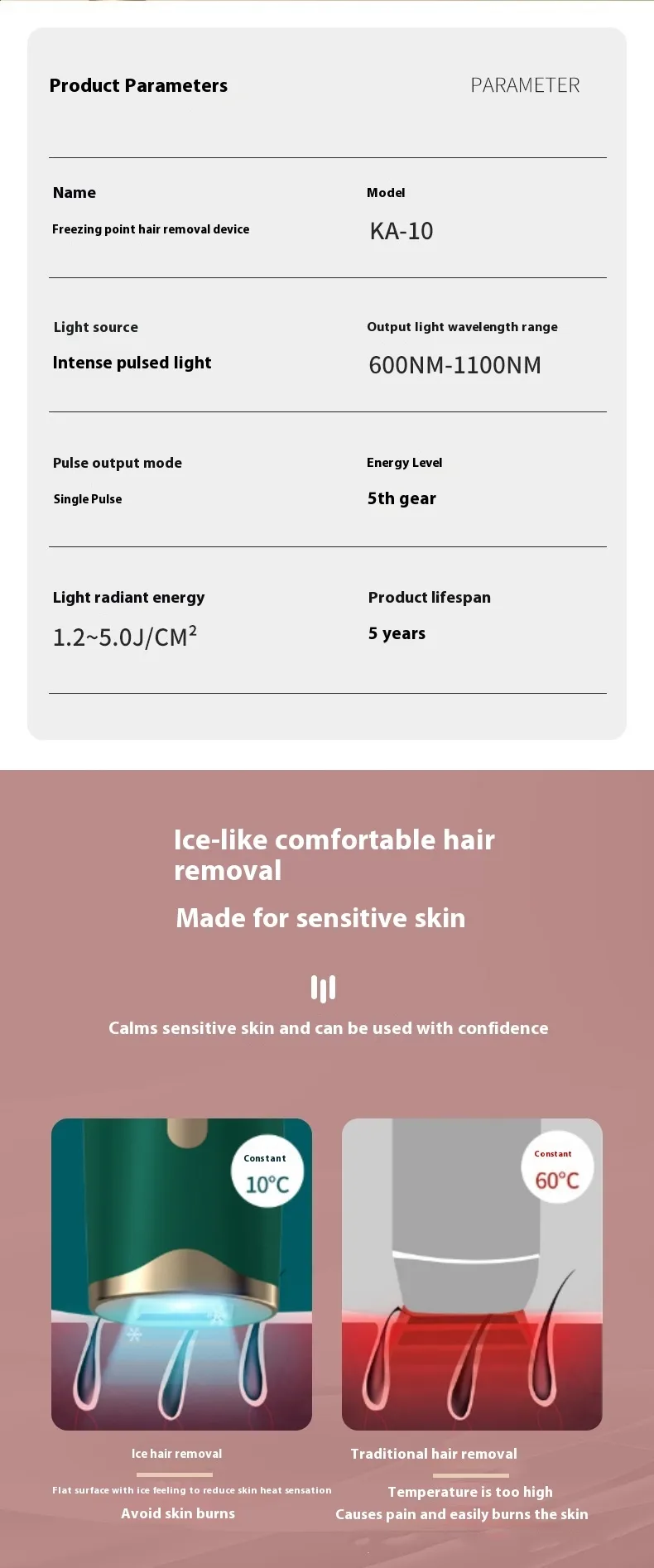 Unlike traditional hair removal methods, such as waxing or shaving, the Household Freezing Point Laser Hair Removal Device ensures a virtually painless experience. The cooling effect of the freezing point technology helps numb the skin, making the process comfortable. It’s designed for users who want an effective yet gentle solution to hair removal.