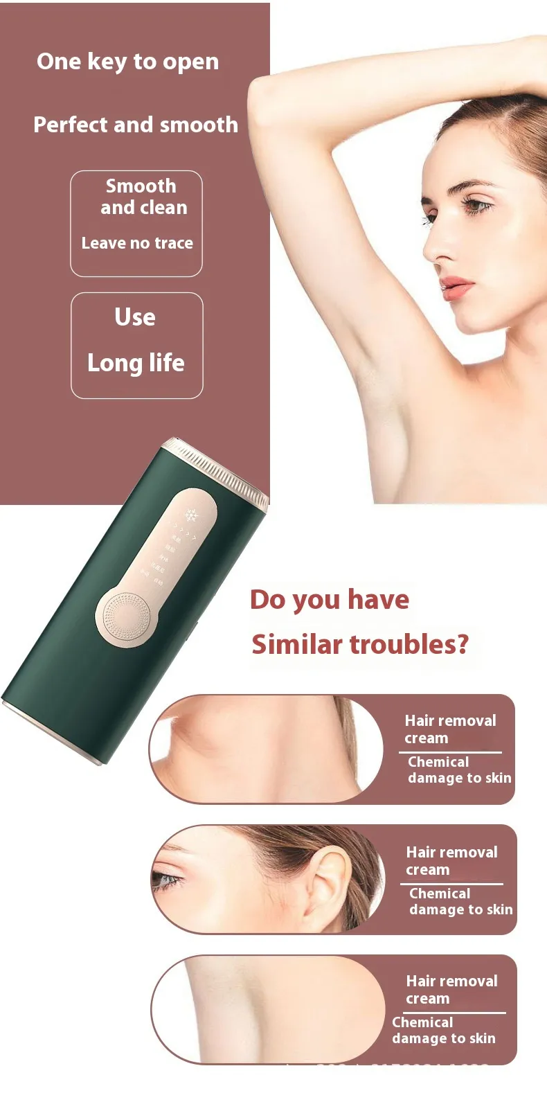 Over time, as you use the device, you’ll experience a significant reduction in hair growth, leaving you with smooth, soft skin without the irritation and discomfort that often accompanies other hair removal methods.