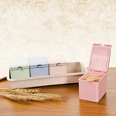 Specification: A: waterproof and moisture-proof seasoning box with spoon, B: wheat straw with spoon, C: wheat straw can rotate four grids