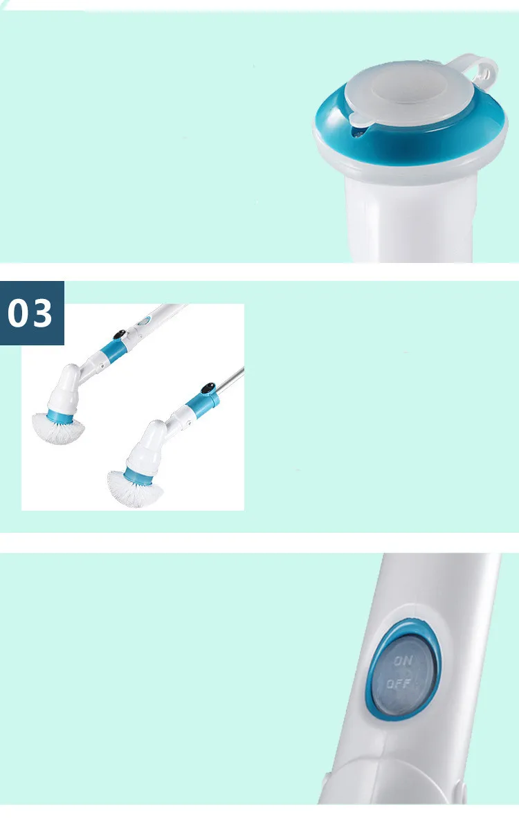 scrubber with powerful rotation and flexible bristle mold enters cracks and crevices to dig out dirt, dirt and mold.