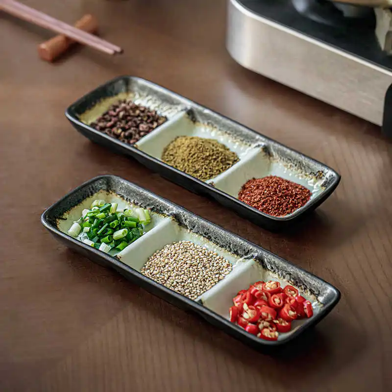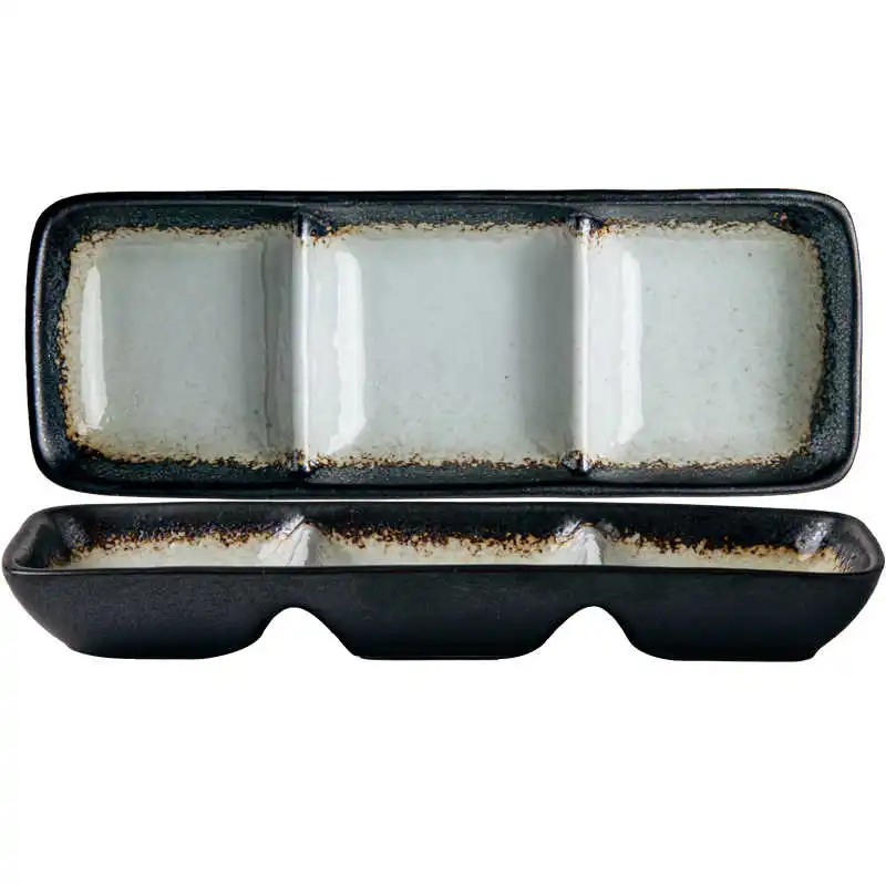 Color classification: 7.5-inch three-grid sauce dish-ink stone x
