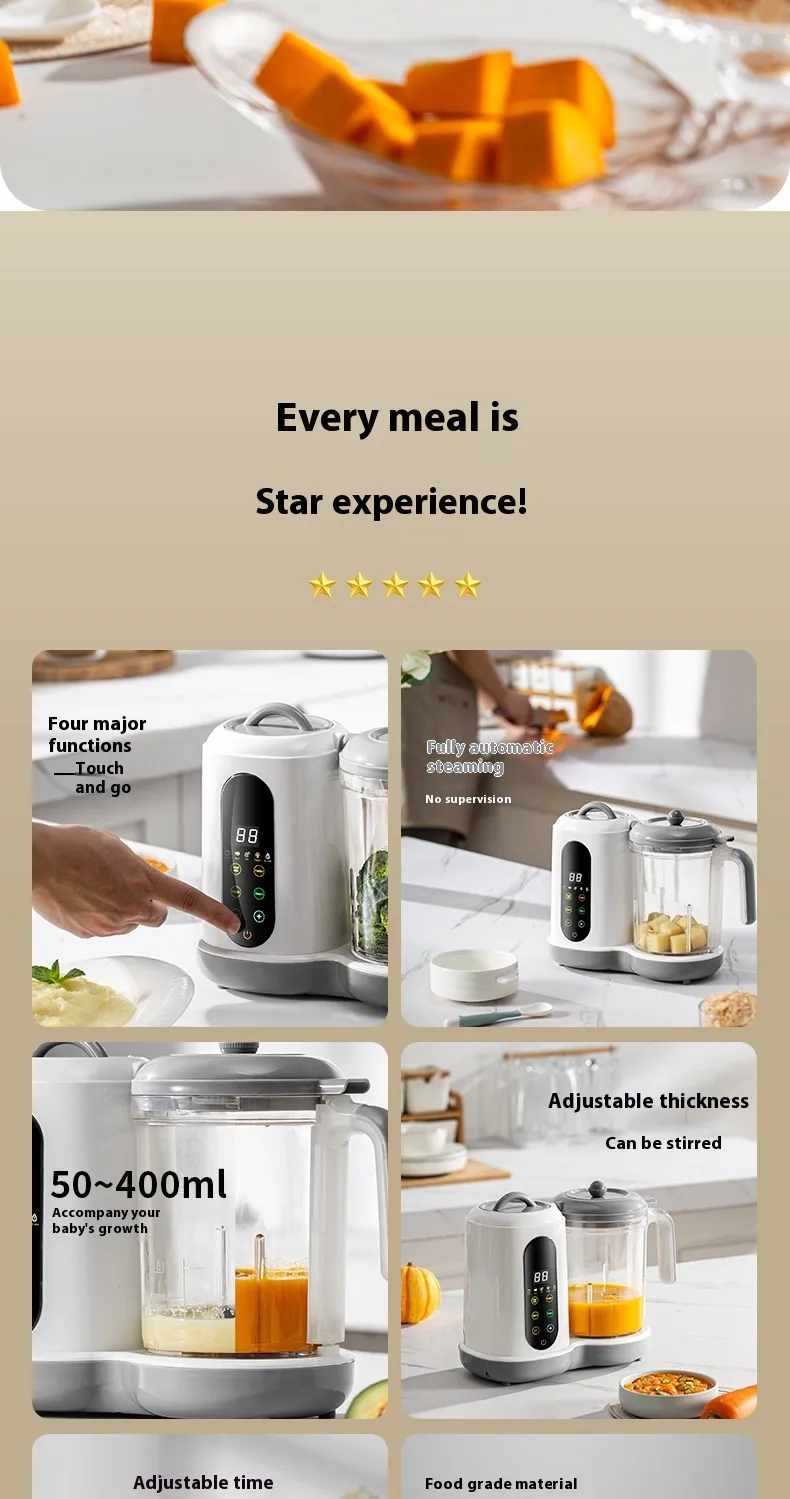 Multi-Function Design: The Baby Food Mixer combines several functions in one appliance. It steams, blends,