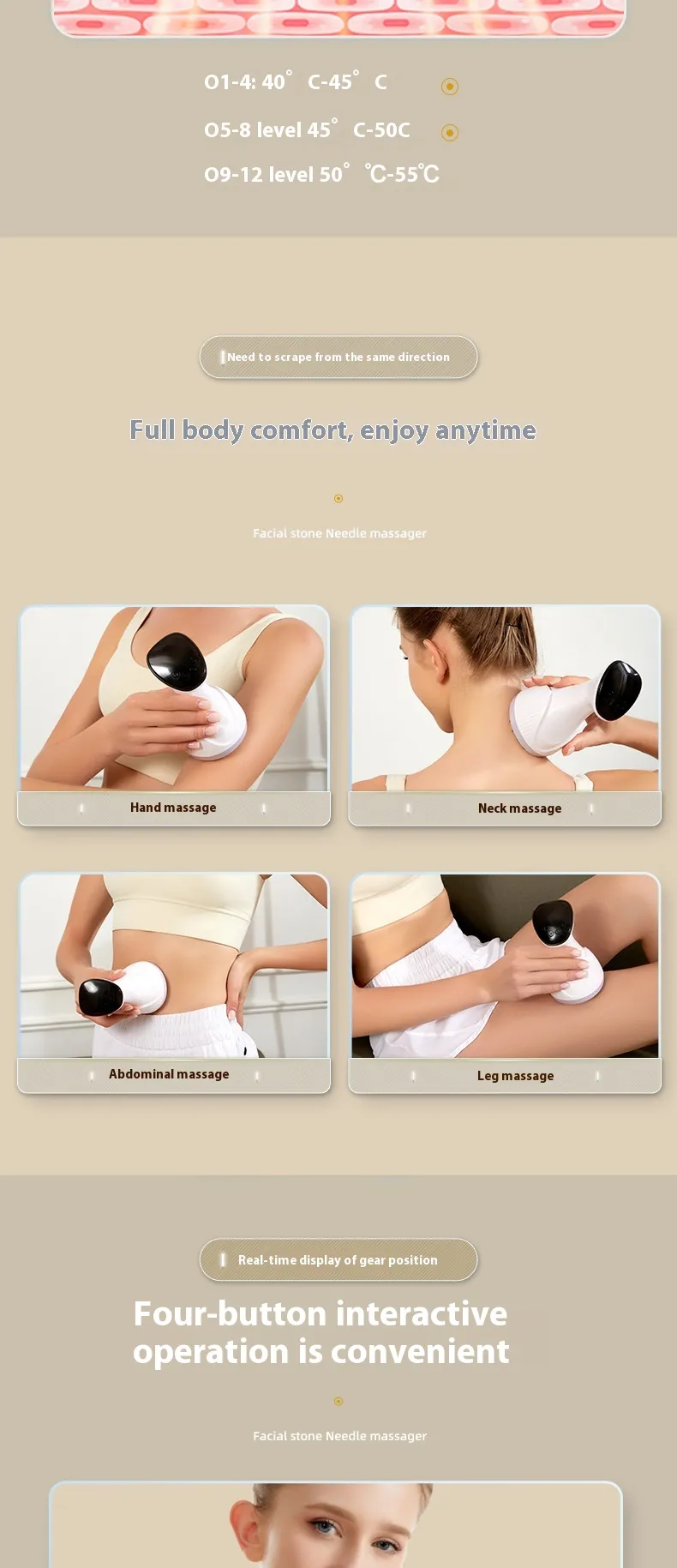 With adjustable temperature settings, you can customize the heat intensity to match your comfort level and therapeutic needs. Whether you want a gentle warmth for relaxation or more intense heat for muscle relief, the device can be tailored to your specific preferences, making it suitable for a wide range of individuals.