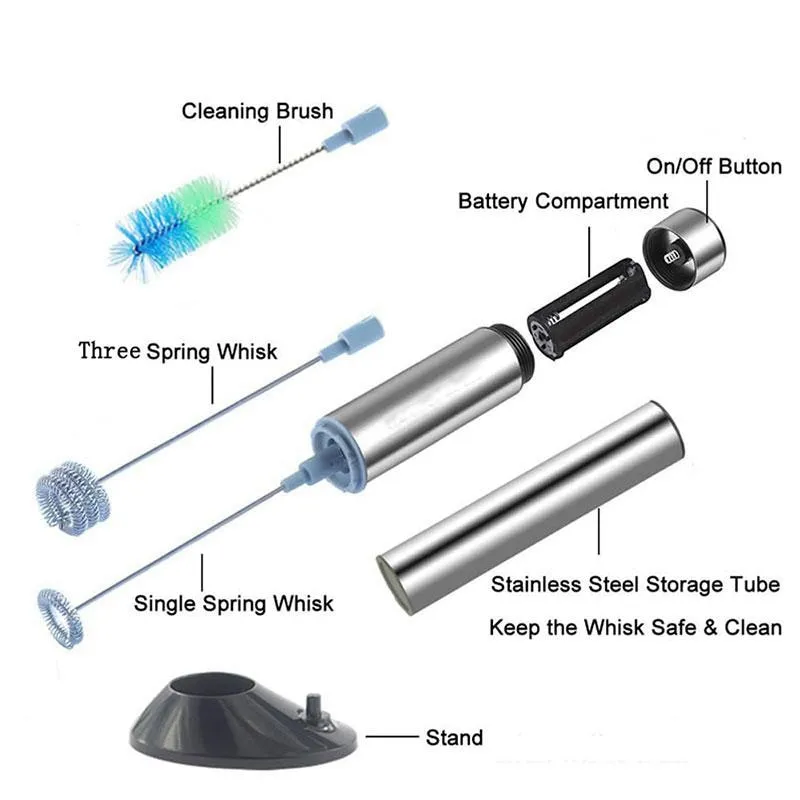 Hand-held milk frother powered by three AAA batteries (not included) for convenient use.The drink mixer sturdy design will last for