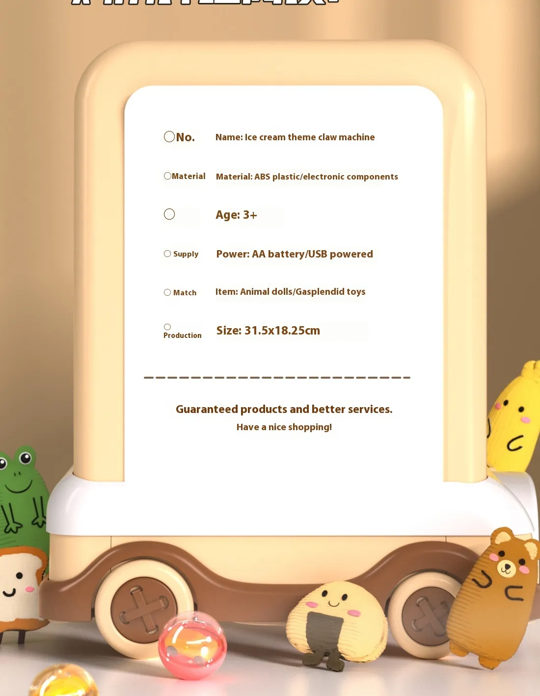 Specifications: Ice cream crane machine, ice cream crane machine 10 dolls, ice cream crane machine 20 dolls