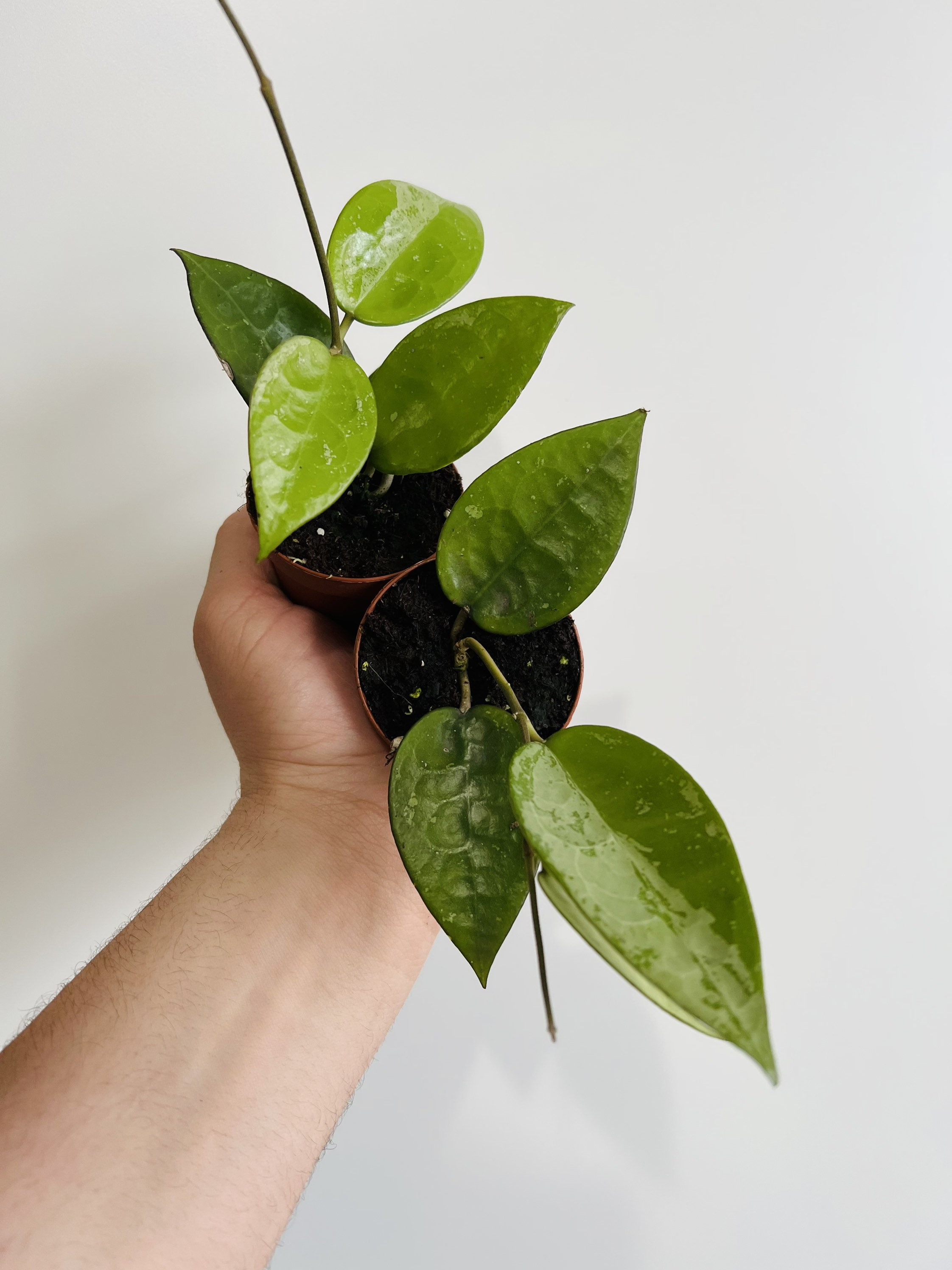 This Hoya variety is perfect for hanging baskets or pots, where its trailing vines can cascade gracefully, creating a lush and dynamic display. It can also be trained to climb a trellis or other support, adding versatility to how it can be showcased. Whether used as a focal point or as part of a larger indoor garden, the Hoya Acuta Splash is sure to draw attention and admiration.