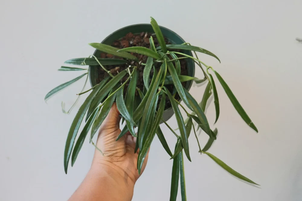 The Hoya Shepherdii plant is a captivating trailing succulent known for its distinctive heart-shaped leaves and intricate vine-like growth. Its foliage features lush greenery adorned with silver speckles, creating a visually appealing contrast. Ideal for both hanging baskets and indoor planters, this Hoya variety thrives in bright indirect light and requires minimal maintenance, making it a charming addition to any plant enthusiast’s collection.