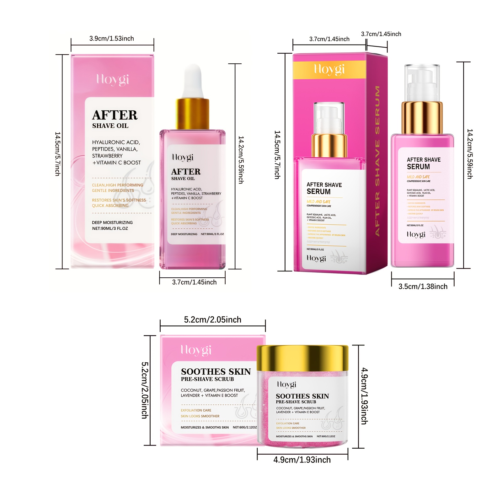 The Hoygi After Shave Oil & Serum Set delivers everything your skin needs before and after shaving. From gentle exfoliation to deep hydration and soothing repair, this set helps prevent irritation while promoting soft, smooth, and healthy skin. Perfect for anyone who wants a comfortable, irritation-free shave with visible skin benefits.