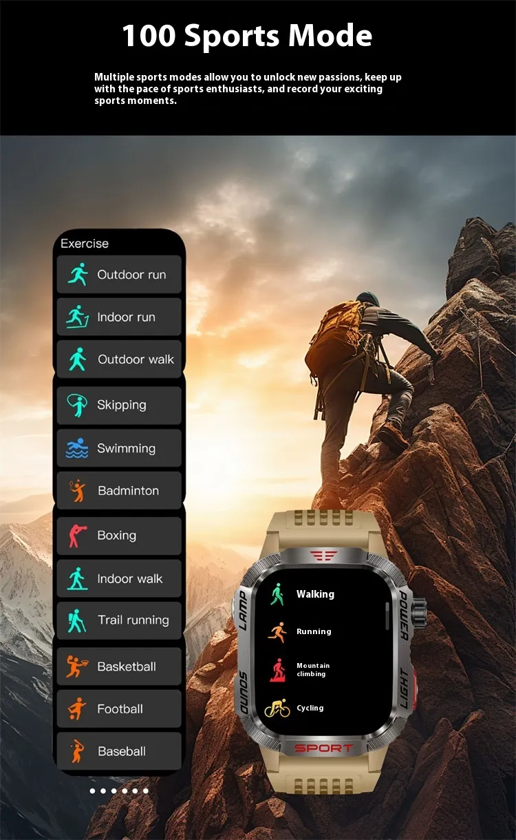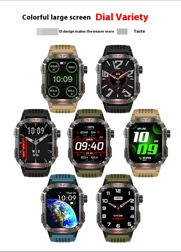 Functions: Waterproof, step counting, heart rate monitoring, blood pressure measurement, social entertainment, Bluetooth calling, smart