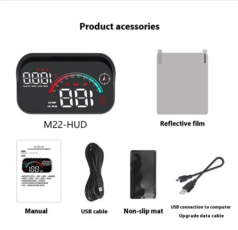 Speedometer * 1 Reflective film * 1 Instruction manual * 1 USB cable * 1 Anti slip pad * 1 USB connection computer upgrade data cable * 1