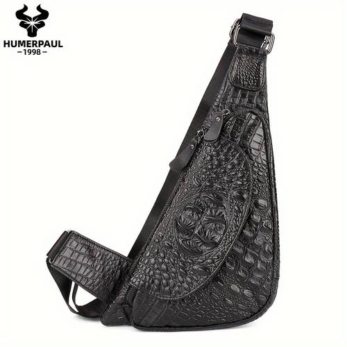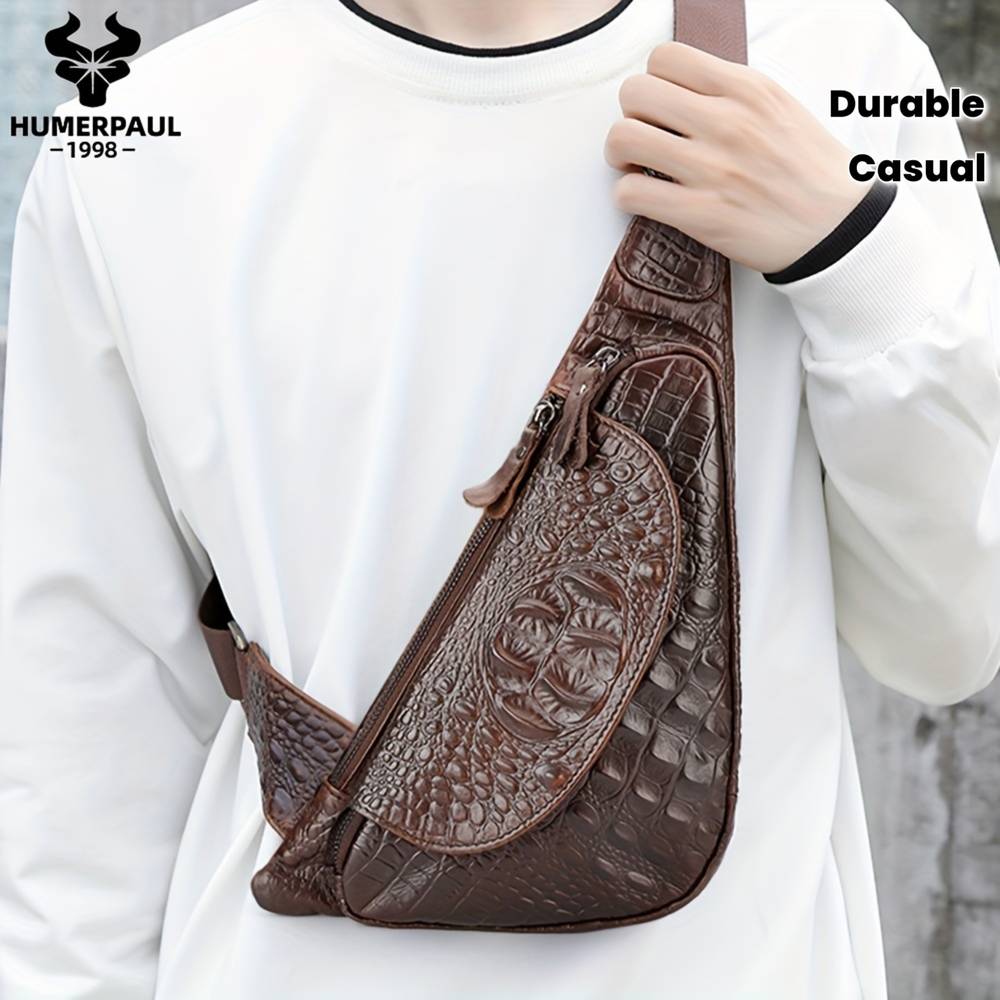 HUMERPAUL Men’s Genuine Leather Crossbody Bag – Stylish Alligator Pattern with Multi-Compartment Design for Daily Commute